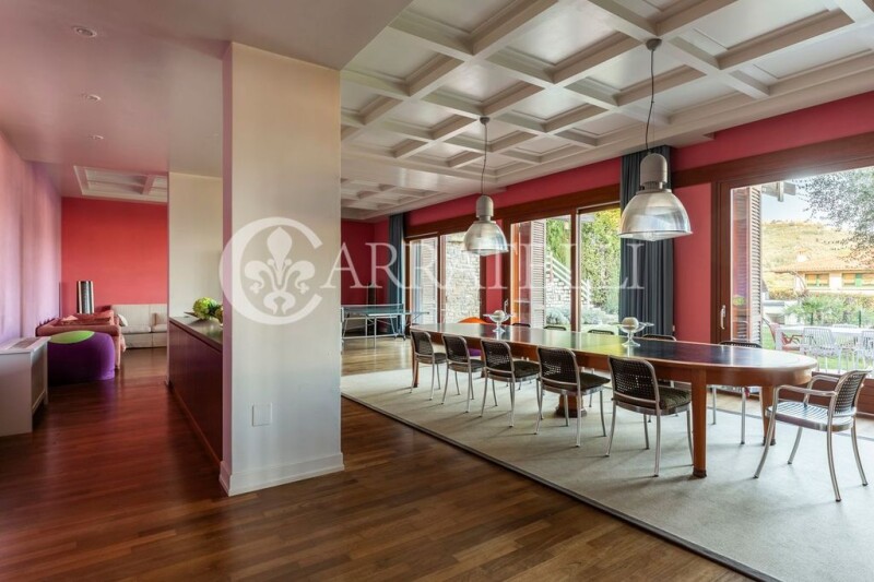 Twenty minutes from Lucca, luxurious and modern villa of about 780 sqm with private garden of about 2300 sqm and swimming pool. Description In the first hill in a panoramic area stands the luxury villa of about 780 sqm consisting of ground,first and second floor. Through the gate we reach the property along a private road surrounded by greenery and olive trees. On the entrance floor we are greeted by an access room to the living area of about 100 square meters characterized by large windows overlooking the garden,to the eat-in kitchen with access to the outside and to the stately study also overlooking the outside.On the ground floor has been designed an apartment perfect for service personnel equipped with kitchen,bedroom,laundry and service bathroom. Climbing the imposing and wonderful internal staircase you reach the first floor where a large gallery disengages the dining room,the large living room with fireplace and TV area and a second kitchen with wood-burning oven for cooking.On this floor is the sleeping area consisting of a large master bedroom with hallway,large closet room and private bathroom;a second single bedroom also with exclusive bathroom and another double bedroom with its bathroom.On the second and last floor you can appreciate the study and a guest studio with double bedroom and bathroom. Outdoor Spaces The outdoor spaces of this luxury property are many and all with easy access from the rooms and the living area.The private park of about 2500 square meters has been planted with olive trees and decorative plants,perfect contour for the relaxation area overlooking the large swimming pool.The villa is served by panoramic balconies on the first floor and a wonderful roof terrace from which you can admire a beautiful panorama The large access loggia on the ground floor of the house can be equipped with tables and sofas to welcome guests and spend relaxing moments. The flat garden has been equipped and furnished with modern and cozy taste. From the garage that can comfortably accommodate three cars there is direct access to the villa with a very convenient internal staircase.A private well is on the property in use for the pool and automatic irrigation State and finishes The villa is perfect in every part of its interior and exterior,no maintenance work is required.There are two boilers that power the villa connected to the aqueduct and methane.The interior finishes are of the highest level.Precious marbles have been laid on the ground as in the bathrooms while,for the sleeping area,warm wood has been chosen. The atmosphere that you breathe is very stately and luxurious. Potentiality of use the property is perfect for a large family who wants to live surrounded by greenery at a step from all major services Location Tuscany's largest and most famous spa town has been celebrated for its healing waters since at least the 16th century.Strategically located to reach the sea in just forty minutes.