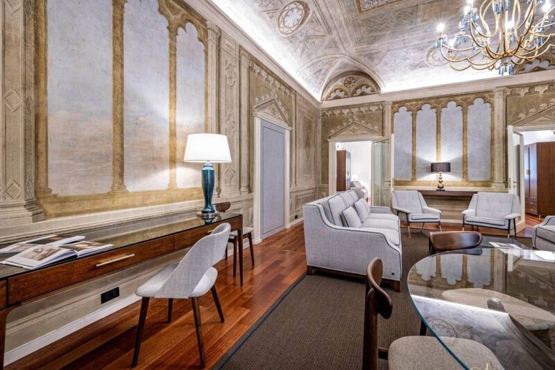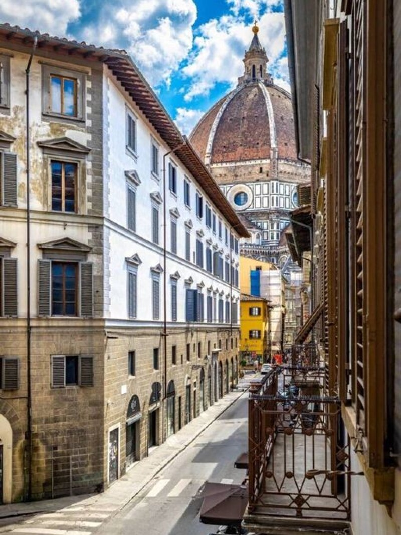 Luxurious and exclusive apartment perfectly renovated, on the first floor of a historic building, in the heart of the city of Florence. In the heart of Renaissance Florence, just steps away from the majestic Cathedral of Santa Maria del Fiore and Brunelleschi's Dome, lies this exclusive luxury apartment, which combines timeless elegance and modern comforts in 420 square meters of surface area on the first floor of a historic building that in the 16th century was home to the architect Bernardo Buontalenti. The property has been restored and furnished with great care, combining modern elements with historic beauty, and the spaces are enriched by coffered ceilings and numerous luxury details that reflect the historic architecture of the time. The original 17th century frescoes decorate the rooms, giving them a unique and fascinating atmosphere. The spacious and harmonious interiors are embellished with fine parquet, high ceilings and refined design details. The entrance leads to a large living area consisting of two bright living rooms and two modern, fully equipped kitchens, ideal for moments of conviviality. One of the large living rooms, once used as a reading space, is characterized by suggestive paintings and is accessible via two separate entrances. The strategically positioned windows guarantee natural brightness that enhances each room. The sleeping area includes four large and welcoming bedrooms, each designed to offer maximum comfort. There are seven modern bathrooms, designed with high-quality materials and conceived to combine functionality and elegance. The two exclusive balconies, directly overlooking Brunelleschi's Dome and the Cathedral, offer a unique panorama that also includes Piazza Santissima Annunziata. The technological systems are also of the latest generation for heating, high-speed Wi-Fi connection and satellite system, making this property perfectly aligned with the most modern standards and it is sold complete with the furnishings shown in the photographs, making it immediately habitable for the new owner. Thanks to its internal distribution, the apartment offers the possibility of being divided into two independent units, each of 210 square meters, without sacrificing charm and functionality. The strategic position, immersed in the historic center, allows you to enjoy the cultural and architectural wonders of the city, as well as being close to the renowned Florentine restaurants and boutiques. Florence, renowned throughout the world as the beating heart of the Renaissance, is a city that enchants with its history and culture, also offering top-notch gastronomic experiences. Its strategic position makes it ideal for exploring not only its artistic wonders, but also the surrounding landscapes. A short distance away, there are the green hills of Chianti, famous for the vineyards that produce some of the best wines, the refined beaches of Forte dei Marmi and the crystal-clear.