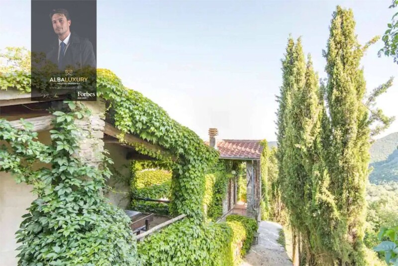 This extraordinary property is a complex of villas with six bedrooms, situated in a dominant position atop a hill, offering enchanting views of the surrounding hills, completely immersed in nature. The property was renovated in 2020, retaining its rustic touch to preserve its unique charm. Authentic stone works, the outdoor fireplace in the atrium, and exposed beams blend perfectly with the wooden floors. The main villa can accommodate up to 8 people in 4 luxuriously furnished suites. The ground floor features a cozy entrance with a fireplace and a sitting area with two sofas, along with a guest bathroom. A spacious open living area, complete with a fireplace and direct access to the outdoors, overlooks a dining area that can seat 10 people. The fully equipped kitchen completes the ground floor. The first floor of the main villa comprises two double bedrooms, each with a private bathroom with a shower. Two additional bathrooms are available on this floor. The lower floor, accessible via an external entrance, offers two more double bedrooms with private bathrooms and valley views. The guesthouse, with two double suites, provides accommodation for another 4 people. Both rooms have private bathrooms with showers. For relaxation and entertainment, the property offers a spacious studio with a ping pong table, lounge area, foosball table, and a variety of board games. A quick climb to the tower bar offers spectacular views of the surrounding landscape. Outside, you'll find a private uncovered parking for up to 5 cars, a saltwater pool with sun loungers, and a bathroom with shower near the pool. The 500 sqm garden boasts an outdoor dining area with 12 seats and an outdoor kitchen with a pizza oven and barbecue. The property is surrounded by a wild forest and offers a variety of fruit trees, including plum, pomegranate, kiwi, and lime,.