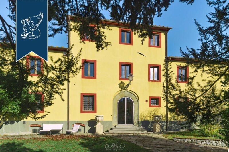 This enchanting luxury villa surrounded by a stunning 23,000-sqm park is for sale in Pistoia and was once a property of the Bourbons of Austria. This villa measures approximately 1,000 sqm and is divided into three levels. With its twelve bedrooms and ten bathrooms, this estate perfectly combines exceptional comfort with age-old charm. The entrance to the villa is majestic, characterized by an impressive avenue that crosses an olive grove composed of certified organic olive trees and a magnificent fountain placed in front of the main entrance. In this large green space there is no shortage of areas dedicated to leisure and outdoor sports, including a splendid swimming pool equipped with a sunbathing area. The villa is in a very private area, yet close to the major points of historical and cultural interest in Tuscany. Ref: 6526.