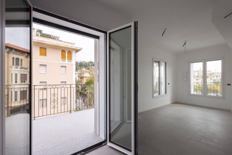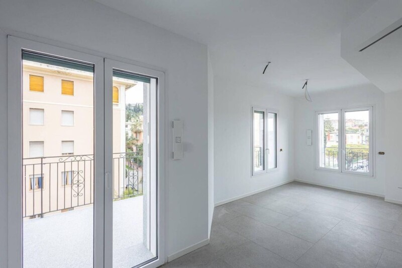 AG-DOM NC0004-017 - New one bedroom apartment in the condominium Savoy in Bordighera The "Savoy Residence" is the first "CasaClima" condominium in Liguria, with fine finishes. The strengths of a "CasaClima" building are the certified quality, protection of the climate and the high living comfort which guarantee optimal living conditions. Energy efficiency is guaranteed by solar panels, Portuguese cork insulation, controlled mechanical ventilation in every room as well as the installation of triple-glazed windows to guarantee excellent acoustic soundproofing. The architectural and aesthetic appearance of the building is characterized by an alternation and an orderly succession of glass surfaces and solid walls, characterized by geometric essentiality in plan and linear and simple volumetric shapes with decorations that recall the Art Nouveau style. We present for sale a new two-room apartment in energy class "A4", located on the third floor with North-East exhibition area, consisting of a welcoming entrance that leads to a living room with open kitchen with access to the terrace, a double bedroom and a bathroom with large Italian shower. The porcelain stoneware flooring throughout the apartment creates a flow of continuity between the rooms. Possibility of purchasing an underground garage, directly connected to the upper floors, with a modern lift. Last one bedroom apartment left for sale in the structure.