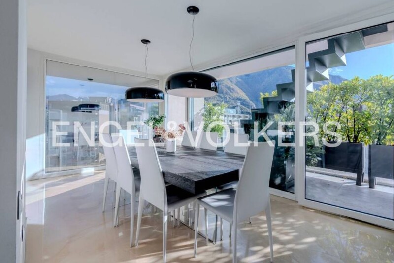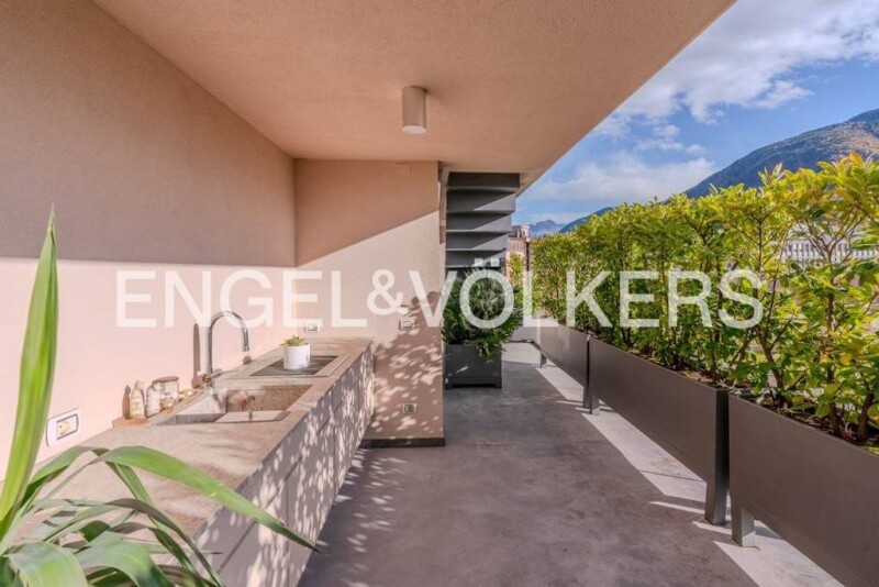 From the terraces of this penthouse, enjoying the breathtaking spectacle of the Dolomites on the horizon will give you a simply exclusive viewpoint. In this more unique than rare residence, contemporary design, comfort and nature come together in perfect harmony, created to offer an unparalleled living experience. Built in 2012, it rises above an existing stately condominium of only 10 flats, and thus occupies the entire two highest floors of the building. The large sliding windows, which characterise the entire flat, frame a unique 360-degree panorama of the city and surrounding mountains, inviting nature inside and providing an atmosphere of serenity and well-being. The fine interior design, with attention to the smallest details, combines modern elements and Made In Italy craftsmanship, creating an elegant and refined ambience. The heart of the house is the bright living room with open kitchen, designed and arranged to host elegant dinners, entertaining lunches and enjoying the relaxation that the penthouse offers. The 3 bedrooms are oases of peace and privacy, perfect for regenerating after a long day. The master bedroom has a sensational en suite bathroom with full bathroom facilities, a Jacuzzi, a Turkish bath with armchrome and an adjoining fitness room. But it is on the outside that this property reveals all its magic. On the sixth floor we find two balconies, two large, perfectly equipped mirrored terraces, an outdoor kitchen, and an outdoor dining room with a fireplace. A refined staircase leads us to the seventh and last floor, where we are greeted by two hanging gardens with all-round views of the countless natural and urban wonders of the place. And for those in need of additional space, there are two attics, ideal for storing sports equipment or seasonal items. Completing the offer is a private garage of no less than 69 square metres, a practical and convenient solution for those who wish to always have their car safe. This penthouse is not just a house, it is a unique opportunity to reward oneself with a truly exclusive living experience, where every detail has been thought out to ensure maximum comfort and well-being.