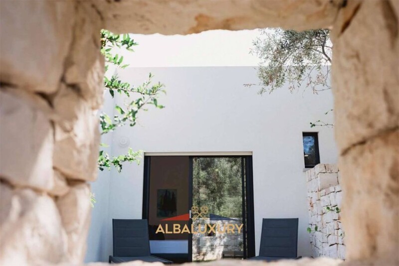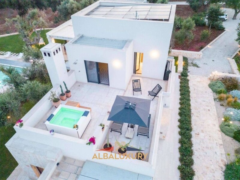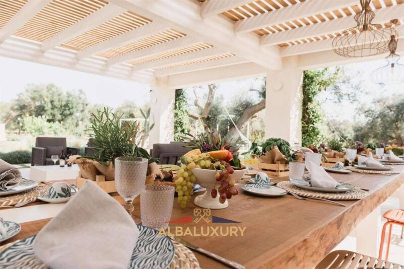 This beautiful luxury farmhouse located in the heart of Salento is designed to offer the utmost comfort and relaxation. The property extends over a plot of approximately 20,000 square meters, with the possibility of purchasing adjacent land, and is equipped with every modern comfort, while maintaining the authenticity of traditional Apulian and Salento architecture. Architectural Features: Total Area: 430 sqm Bedrooms: 6 doubles, including 3 suites (Stella Suite, Arco Suite, and Trullo Suite). Each room has a private bathroom with shower, access to a private outdoor courtyard with an outdoor shower, lawn, and countryside views. Each room is equipped with an independent heat pump heating system. The Stella Suite, located on the first floor, is accessible via a custom-designed staircase and has a private terrace with a whirlpool and solarium. Living Area: Large living room with dining room and open-plan kitchen (100 sqm), guest bathroom, and pantry/laundry area. Fireplace and numerous openings to enjoy the outdoors from the inside. Independent heat pump heating. Exteriors: 1000 sqm garden, saltwater pool with beach and solarium, pergola with outdoor kitchen, barbecue, and custom wood-fired oven. Storage room and outdoor bathroom. Fully fenced property with automatic gate and CCTV. Dry stone perimeter walls (UNESCO). Gym/Spa: Dedicated space with provision for indoor whirlpool tub and independent heating/cooling system. Automated private garage. Insulation: Coat insulation system and high-quality fixtures for excellent thermal and acoustic performance. Plant Engineering Features: Heat Pump: Sized for summer and winter needs, including hot water production. Solar Panels: Hot water production (approximately 500 liters). Photovoltaic Panels: Electricity production, covering 75% of energy needs, with battery storage system. Artesian Well: Water supply from the aquifer. UV Ray Softener: To improve the chemical and physical properties of water. Security Systems: Partitionable alarm, closed circuit surveillance, video intercom. Saltwater Pool: With whirlpool and heating provision. Green Management: Automatic irrigation system and twilight lighting. Energy Class: Energy Class A4, ensuring extremely low energy management costs. Timings: Project started between 2018 and 2019, with work beginning in December 2019 and completed in August 2022. This farmhouse represents a perfect combination of elegance, tradition, and modernity, ideal for those seeking a luxury oasis in the heart of Apulia. For more information or to book a visit, contact us.