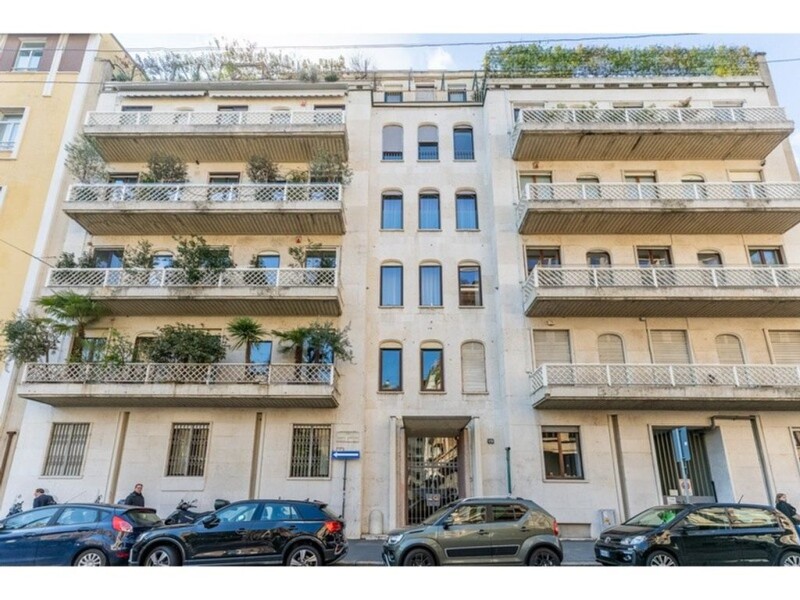 Apartment for sale, located on the fourth floor of an elegant building with elevator, designed by the renowned architect Gio Ponto. The apartment, completely renovated in 2023, enjoys a quiet interior exposure while being very bright at the same time. Internally, it consists of an entrance leading to a spacious hallway with built-in wardrobes, a living room and dining area with balcony, fully equipped kitchen, main bedroom with private bathroom and walk-in closet, small second bedroom, second bathroom and a laundry area. The windows are made of wood with double glazing, parquet floors throughout with marble floors in the bathrooms. The apartment also includes central heating, digital ducted cooling, alarm system, and video intercom. There is a cellar of 15 square meters as well as full-day doorman service.