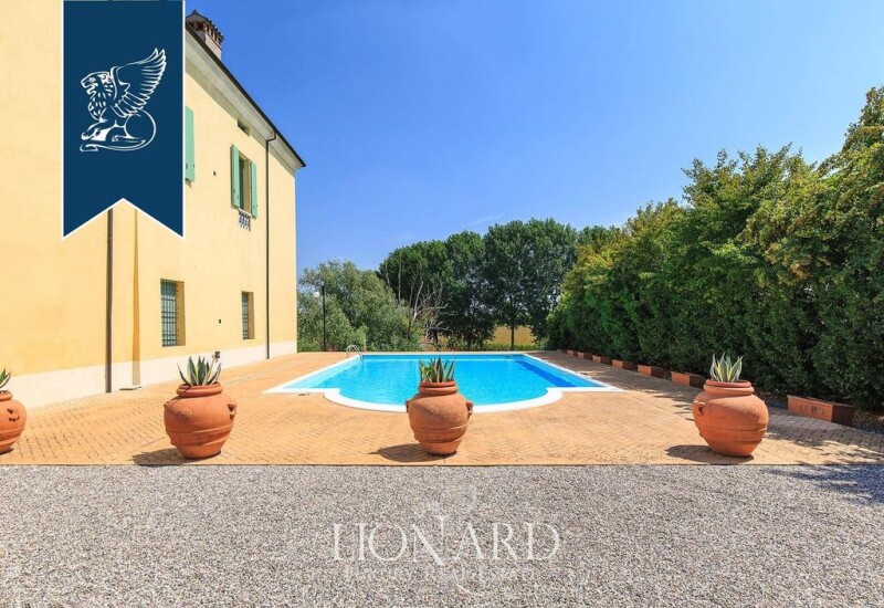 This historical estate near Mantua is for sale. This three-storey estate measures 1,400 m2. The ground floor is home to an entrance hall leading to a living room, a fully-equipped kitchen, two bedrooms, and a bathroom. On the first floor two living rooms, 3 bedrooms and a kitchen complete the property. 3,200 m2 home to a beautiful swimming pool surrounds the villa. RIF. 3303.