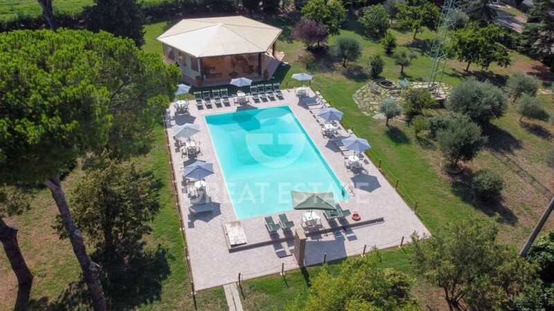 In the beautiful setting of Lake Trasimeno we find this property consisting of a recently renovated villa on two floors used for tourist rentals with swimming pool and gazebo, and a sixties villa on two floors and a warehouse to be restored, surrounded by a luxuriant garden with plants and ornamentals. The property is located a few steps from the historic center and offers beautiful panoramic views overlooking the castle of Castiglione del Lago and the lake. In a perfect combination of proximity to the town and maximum privacy, within the wonderful landscape of the Umbrian countryside and Lake Trasimeno we find this recently renovated villa which develops an area of about 321 sqm spread over 2 floors. On the ground floor there are three apartments with a living room-kitchenette, a bedroom and a bathroom; on the first floor there are three other apartments with a living room, a kitchenette, two bedrooms and two bathrooms, one with a private terrace. The sixties villa on two levels of about 400 square meters used on the ground floor as a warehouse and on the first floor as a private house divided into two apartments, needs a renovation of the systems and the roof. In the beautiful garden we find the infinity pool on 3 sides, double filtration pump, dimensions 9x16 with depth from 1.4 m min to 2 m max, 1 hectare of land divided into a garden, gazebo with quartz flooring, parking and courtyard. State of repair The holiday home was renovated in the 2000's and other maintenance and extraordinary maintenance interventions were recently carried out. The 1960's Villa needs a renovation. Utilities The property is served by all services, a photovoltaic system of about 14kw installed on the roof of the villa used for tourist rentals, split heating. The Villa on the first floor is equipped with heating with pellet stoves, well water and aqueduct. Use and Potential Uses Perfect as an accommodation business and private home. The property also lends itself to hosting events and is ideal for having the activity together in a private home. An approved redevelopment project had been prepared to transform the change of use from the garage to two apartments, a renovation of the 1960's villa is necessary, the ground floor has no heating, a new electrical system will need to be installed. Location About 2 km from the center of Castiglione del Lago and all services. Land registry details The Great Estate group carries out a technical due diligence on each property acquired through the seller's technician, which allows us to know in detail the urban and cadastral status of the property. This due diligence may be requested by the client at the time of a real interest in the property. Ownership details and eventual contractual obligations This property is in the name of a partnership, with a 5-year bond with the Umbria Region starting from January 2023 to keep the business open for another 5 years and the sale will be subject to registration tax according to current regulations (see purchase costs from companies).