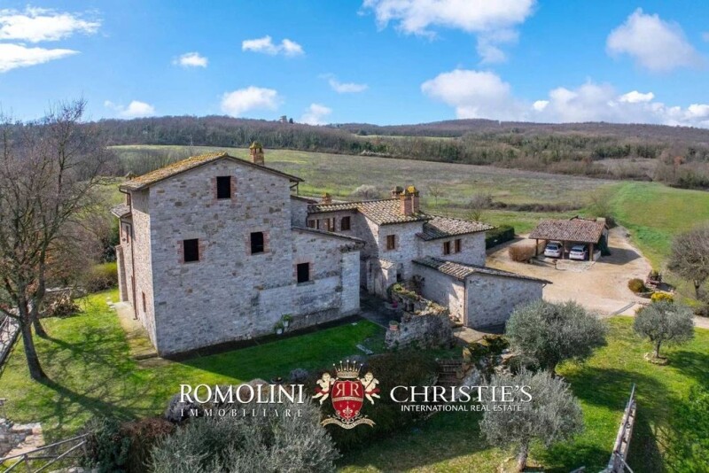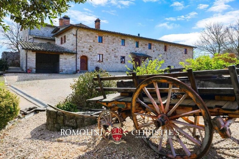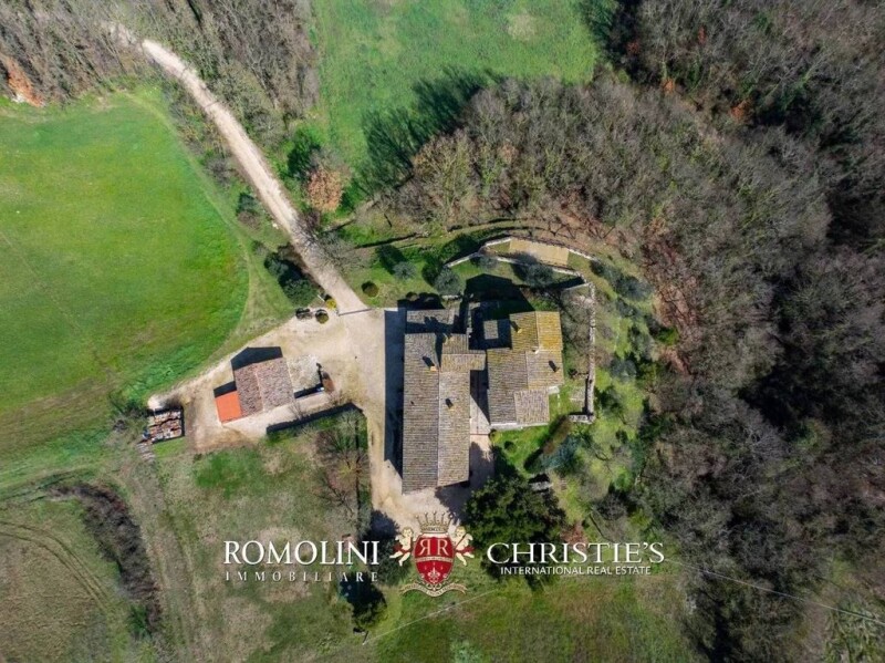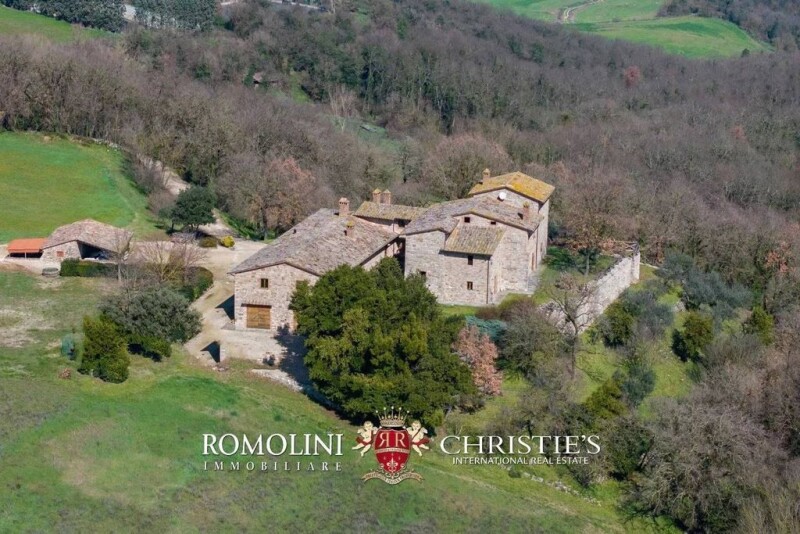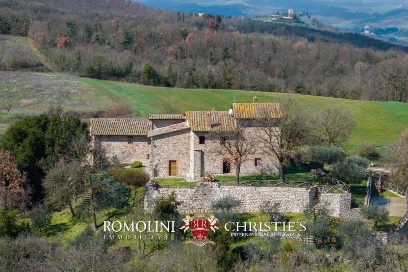 With panoramic views of the historic center of Todi, in the heart of Umbria, farmhouse with medieval tower of the 13th century for sale. The property (over 600 sqm), which sees preserved and enhanced all its original features, thanks to a philological renovation, is unique and the perfectly preserved exposed stone in all facades is enhanced by the green of the surrounding nature. The partially renovated building also lends itself to be divided into several residential units with independent outdoor spaces for guests. The 8.3-ha plot of land surrounding the house is covered in woods with truffles and arable land, and there is already a platform for the construction of a panoramic swimming pool. This farmhouse is ideal for those seeking an oasis of peace and tranquility not far from services, and from the center of Todi not giving up contact with unspoiled nature and absolute privacy. Services are available in the nearby medieval village of Todi (about 15’) by car, but the proximity to the E45 highway (just beyond Todi, about 20’ drive) allows easy access to most of the cities of Umbria (Perugia, Assisi, Deruta, Spoleto) and Rome (2h drive). DESCRIPTION OF THE BUILDINGS The main wing of the farmhouse (340 sqm) is on two levels, connected internally by a majestic staircase with travertine steps and wrought-iron railing: - Ground floor: large entrance hall, bedroom with en-suite bathroom, laundry, cellar and three covered garages (all connected internally to the house); - First floor: double living room with original fireplace, sitting area, eat-in kitchen, two double bedrooms, two bathrooms (one for the living area, one for the sleeping area) and storage room. The secondary wing (220 sqm – 2,367 sqft) was built at a later date, eventually encompassing the tower of the old castle, and can also be reached via a bridge room from the main wing. This section has been fully consolidated but left in builder’s finish, so that the buyer can choose the finishes he/she prefers with complete freedom. The skillful restoration carried out by the owners has been able to preserve and enhance the building’s most sought-after finishes including exposed stone walls with original angles and decorations dating back to the Middle Ages, fully restored roofs with chestnut beams and reclaimed terracotta tiles, original terracotta floors with 40 × 15 cm tiles, fixtures still made of chestnut wood but with insulating double glazing for better energy efficiency, solid chestnut wood doors (some original, others faithful reproductions throughout), period fireplaces made of dressed stone and hand-wrought iron railings. This is then complemented by the modern solution of underfloor heating with independent management of as many as five zones, assisted by a pellet stove for any additional needs. Accompanying the main building is a shed with a canopy (40 sq m), an outdoor bathroom dating back to medieval times, and an 8 m tub that was used in not-too-distant times by farmers for washing clothes. PROPERTY HISTORY The property, originally a 13th-century castle called “Lo Scacciatoro”, has undergone several transformations over the centuries. Some of the owners were certainly from noble families, and this is evident from the choice of fine materials and finishes. The structure has great historical and cultural value, and the splendid tower (of which only the base remains), was certainly much higher so as to allow the sighting of the enemy. The church of which only a few traces remain, however, was located next to the tower and dedicated to “Our Lady of the Snows” since, according to legend, it was the first snowfall of the year that pointed to the place where the church was built. The entire complex, of which the church was an integral part, housed for a long time a convent run by Augustinian friars. In 1574 Pietro Camaiani, a well-known topographer in charge of surveying the religious buildings of the fief, expressly refers to it in the Tudertine Topographical Dictionary in v.151. EXTERIOR The 8.3-hectare (20.5 acres) land surrounding the house is vast and offers the opportunity to enjoy the beauty of nature with woods, a mature truffle farm and cultivated fields, all with the historic center of Todi in the background. Underneath the house, on a reserved terrace, a concrete platform has already been built for the construction of a 10 × 5.5 m Infinity pool oriented right toward the city to the north. The building is then surrounded by terracotta stone walkways that run around the farmhouse. CLOSEST CITIES AND TOWNS Todi (8km; 15’), Orvieto (35km; 45’), Deruta (35km; 30’), Perugia (53km; 45’), Assisi (69km; 55’), Cetona (71km; 1h 10’), Spello (72km; 50’), Passignano sul Trasimeno (78km; 1h), Montepulciano (92km; 1h 30’), Cortona (99km; 1h 20’), Pienza (105km; 1h 40’), Rome (140km; 2h), Siena (158km; 1h 50’), Florence (186km; 2h 20’) CLOSEST AIRPORTS Perugia San Francesco (54km; 45’), Roma Ciampino (153km; 1h 50’), Roma Fiumicino (166km; 1h 55’), Firenze A. Vespucci (207km; 2h 25’), Pisa G. Galilei (267km; 3h), Bologna G. Marconi (288km; 3h 10’).
