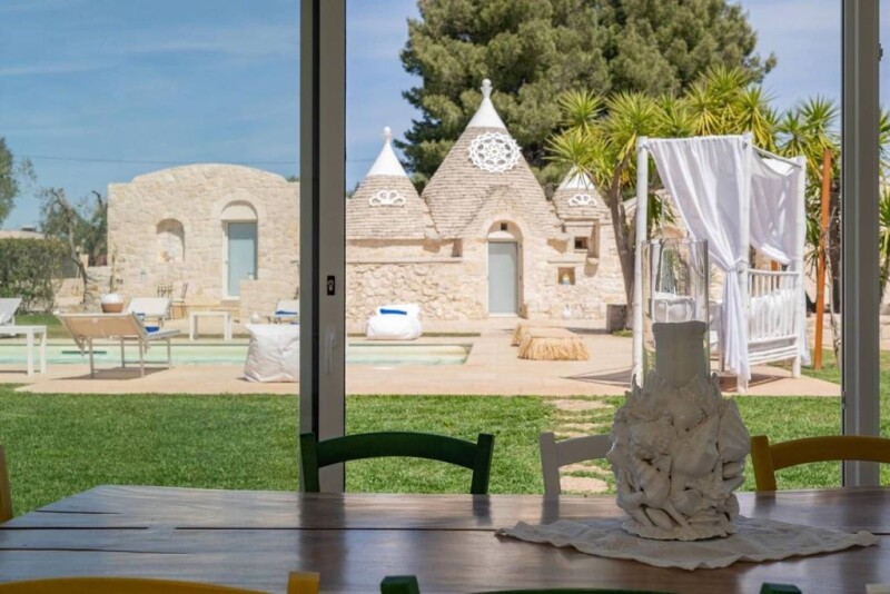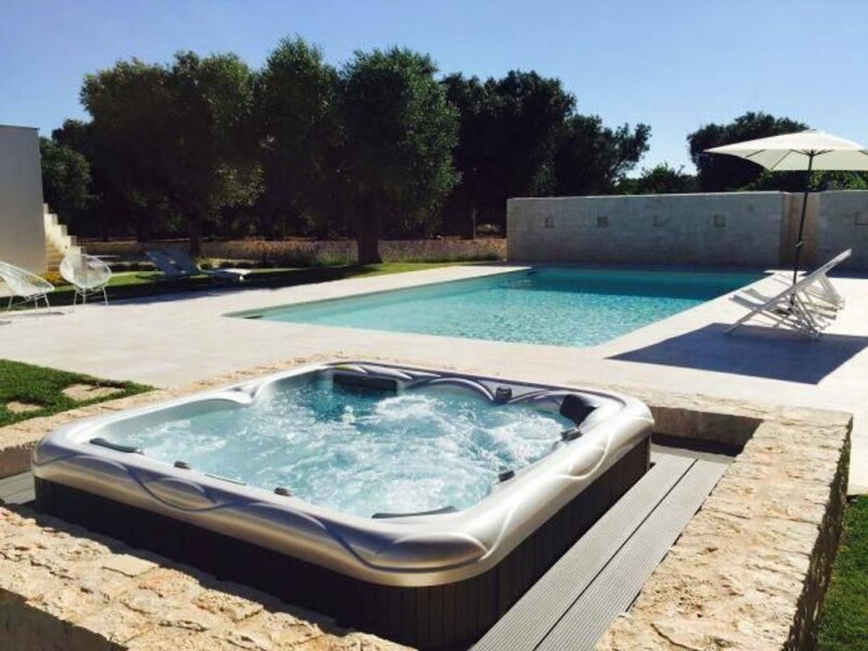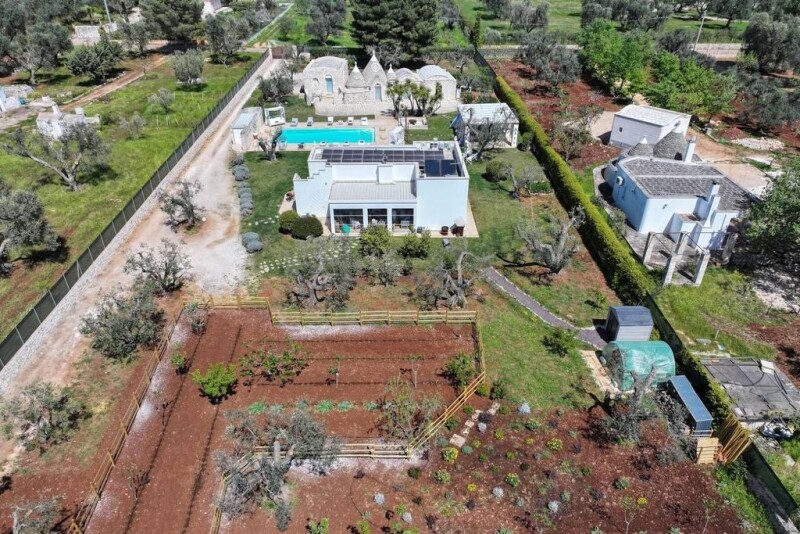 Purity of forms, elegance of lines, intrinsic sobriety are the characteristics that strike at first sight of this property located in the countryside of San Michele Salentino in an inhabited area. The whole structure is complete with every comfort and services such as heating and air conditioning in all rooms, alarm system and surveillance. In the new building we find the living area with modern and equipped kitchen, sitting area with fireplace, two bedrooms and bathroom all with sober and refined furnishings. A veranda with outdoor sofas complete the beauty and comfort of this area which overlooks the entire garden and the splendid swimming pool. Three other bedrooms each with its own bathroom and independent from each other, are located in the splendid and characteristic trullo and lamie overlooking the pool and garden. days outdoors. A large gazebo complete with worktop, sink, induction hob, table and chairs to enjoy lunches and dinners in a surreal atmosphere. In addition to the large salt pool where you can cool off by swimming pleasantly, above all, an exceptional and exclusive whirlpool tub for the well-being of body and mind. can truly give you the holiday of your dreams in total relaxation and in all seasons of the year. LAND DESCRIPTION: The land surrounding the property measures approximately 8,000 square meters. POSSIBLE DEVELOPMENTS: There is the possibility of inserting it in our rental circuits for holiday homes and making it income.