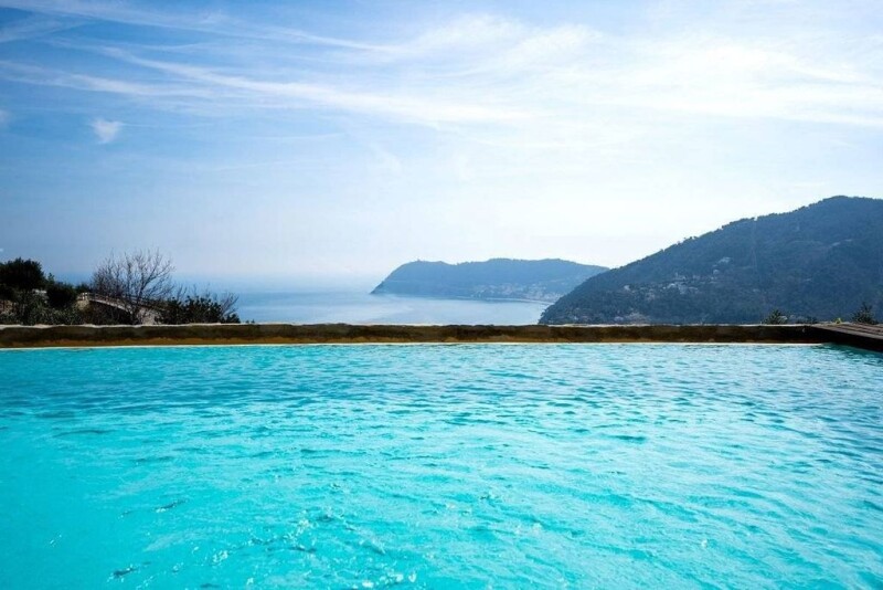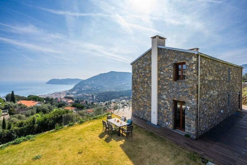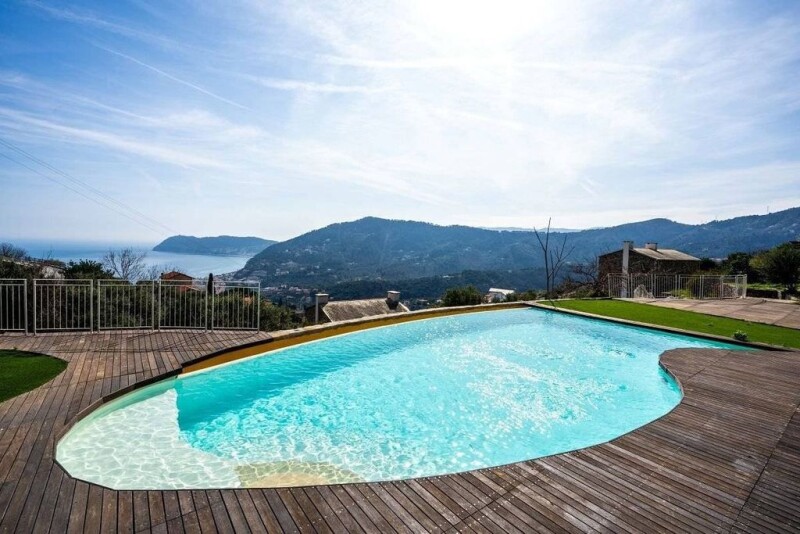 Nestled in the hillside overlooking Alassio, only 8 minutes from the centre, we offer this exclusive stone and wood villa with garden and a spectacular sea-view swimming pool. The villa is arranged on three levels: on the ground floor a double living room welcomes us with large windows framing the view that you will enjoy every day, a service bathroom and a habitable kitchen with a large pantry that overlooks the magnificent terrace where you can organise lunches with friends or romantic dinners. On the first floor there are two bathrooms and three large bedrooms, from whose windows you can appreciate your 4,000 sqm garden and your private swimming pool. Finally, on the floor below there is a space that you can dedicate to relaxation or to your passions and a large bright tavern organised to be adapted to your preferences. The price of the villa is to be considered without furnishings, which are however available at a separate price, with the exception of the kitchen. We are in a unique location, easily accessible from the French Riviera and just over an hour from Nice airport. We are waiting to open the gate to this property and immerse you in an atmosphere of tranquillity, practicality, care and timeless elegance.