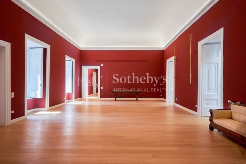 Located in a 16th-century building, Palazzo dei Duchi di Casamassima, in the heart of the Naples historical center - listed on the UNESCO World Heritage Site List - this property lends a unique and evocative atmosphere. The living spaces of this apartment are generous and well distributed: there are 6 bedrooms, one of which overlooks a comfortable and usable terrace, and 8 bathrooms. Large bright and elegant living rooms follow one after the other; among them, one hosts an extraordinary ceiling fresco dating back to the 1700s. The entire property has recently undergone a masterful renovation that has enhanced its charm. Every detail has been taken care of with refinement and attention to ensure every comfort while preserving its integrity. Thanks to its location, all services are within easy walking distance and in addition the property, which lends itself to multiple uses beyond that of a private residence, is equipped with a convenient and capacious garage, which can accommodate up to two city cars.