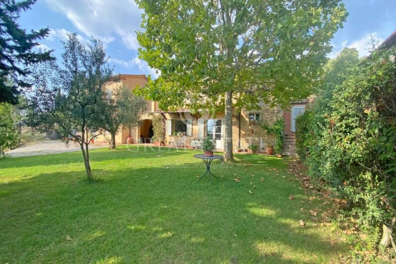 Delightful country house of 215 sqm, a few kilometres from the historic centre of Castiglion Fiorentino, Arezzo, with a total of 3 bedrooms, 3 bathrooms and 2,580 square metres of garden with olive grove. Delightful country house of 215 sqm in Castiglion Fiorentino, Arezzo, with a total of 3 bedrooms, 3 bathrooms and 2,580 sqm of garden with olive grove. A few kilometres from the medieval village of Castiglion Fiorentino, we find for sale this delightful country house of 215 sqm which is spread over 2 floors as follows: On the ground floor there is an entrance hall, a large and bright living room with fireplace, a kitchen with fireplace, a bathroom, a laundry room, a storage room, and a technical room. The first floor, reached by an internal staircase, houses a study with access to the terrace, the master bedroom with walk-in wardrobe and en-suite bathroom, 2 bedrooms, a bathroom with shower and a storage room. Externally, the property is surrounded by 2,580 sqm of garden with olive grove. State of repair The farmhouse was completely renovated in 2011, using high quality materials, typical of the rustic Tuscan tradition. Utilities The property has an LPG heating system, assisted by 2 wood-burning fireplaces, while the water supply is guaranteed by a private well. The farmhouse also has air conditioning, an alarm system and an electric gate. Use and Potential Uses The country house is perfect for use either as a private residence, given its immediate proximity to services, or as a holiday home, where one can relax and spend quality time with family and friends. Location The property is approximately 1 km (3 minutes) from the village, which has all the necessary services such as supermarkets, banks, railway station and shops. Cortona 10 km (15 minutes), Arezzo 15km (20 minutes), Montepulciano 35 km (45 minutes). The nearest airport is Perugia 70 km (1 hour). Rome airport 210 km (2 hours), Pisa airport 190 km (2 hours), Florence airport 100 km (1 hour). Land registry details.