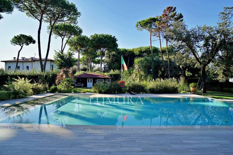 This splendid villa is located just 5 minutes from the elegant seaside resort of Forte Dei Marmi and just in front of the seafront. As soon as you enter the property you are absorbed by a very large and meticulously well-maintained garden full of flowers and towering pine trees. The villa was built in 1920 and with its 10 bedrooms can accommodate up to 20 people. The large infinity pool was recently built and is equipped with showers and changing rooms inside a charming wooden house. On the ground floor there is a large living room, a huge party room/dining room with a marble fireplace, a guest toilet and the majestic staircase leading to the first floor. Beyond the party room is the kitchen with a central island, large and fully equipped. In addition to the kitchen, a double bedroom with attached bathroom, a large laundry room and a mini apartment complete with bedroom, bathroom, living room with kitchenette, perfect for a caretaker couple thanks to the independent entrance directly from the outside. The address on the map it is purely indicative, for more information contact the agency.