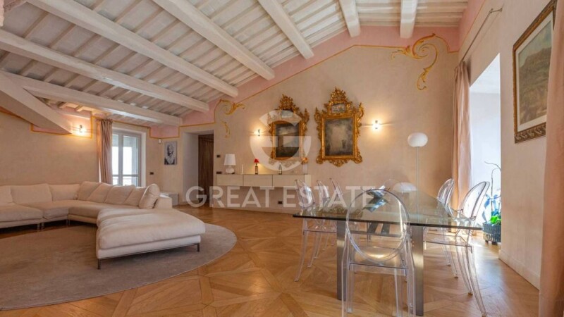 Imagine living in a marvellous penthouse in the heart of the historic centre of the ducal city of Spoleto, overlooking historical and artistic sights of great interest, just a few steps from the most important sites and theatres, home to the popular “Festival dei Due Mondi”. Every day you may stroll through the charming streets of the city, discovering unique views and monuments just a few steps from home. This very bright apartment features high-quality finishes and a lift that leads directly to the interior of the apartment. This apartment with a living area of approximately 305 sqm was restored in 2010. It is located in the historic town centre of Spoleto, offering a charming refuge. The elegant entrance hall of the building features a large and impressive staircase, which leads to the apartment on the second floor: The entrance area welcomes you with style, leading to two large living rooms illuminated by windows that offer a panoramic view of the historic surroundings. The layout of the spaces is balanced and functional, creating a harmonious flow between the different areas. The wooden beams, the decorations on the ceilings, and the parquet floor harmonize perfectly with the modern and high-quality design furniture. The separate live-in kitchen, stunning in its white colour, is designed to be super functional. The two double bedrooms, each with en-suite bathroom and wardrobe, offer comfort and privacy. The apartment also includes two mezzanines, perfect for recreational activities or to create additional workspaces. The laundry room and the two additional bathrooms, beautiful with their mosaics, guarantee practicality and comfort. An efficient underfloor heating and cooling system, as well as an updated electrical system, are perfect for modern needs. Every area of the apartment is designed to offer a warm and welcoming ambience, making this apartment ready to move in and pleasant to live in. An important plus is the existence of a project, already approved, aimed at the realization of a terrace to pocket, which will allow you to enjoy a magnificent and exclusive view on the city and unique moments of relaxation outdoors This property offers a unique opportunity for those seeking an exclusive environment in the heart of a fascinating historic city like Spoleto. State of repair The finishes of this property highlight careful attention to detail and excellent quality of the materials used. The interior spaces have a well-thought-through layout, favouring a harmonious flow. The living room, characterized by a stone fireplace, is embellished with wooden ceilings with exposed beams, which radiate a warm and welcoming ambiance. The parquet floors are well maintained and reflect a sophisticated and modern style, while the walls have been treated with a quality varnish, resulting in excellent condition. The doors are masterfully crafted in fine wood and give even more value and style to the apartment. The kitchen and bathrooms, fundamental elements of the house, have superb finishes, with high quality tiles and functional furnishings. The outdoor spaces, although minimal, are well-kept and contribute to a relaxing environment. Maintenance, both ordinary and extraordinary, has been carried out with care, keeping the property in very good condition, and avoiding signs of wear. The architectural details express the historicity of the building, further enriching its overall value. Utilities All utilities are present and functioning. Water supply is guaranteed via the connection to the public aqueduct. Energy class G. Use and Potential Uses The apartment is ideal both for permanent residence and as a second home, where to spend very pleasant stays, in the tranquillity of an artistic city, enjoying the monumental beauties but also the natural views that it offers. Location Historic city centre Land registry details For each property offered, the Great Estate group conducts – via the seller's technician – a technical due diligence. This allows us to know in detail the urbanistic planning and cadastral circumstances of each property. This due diligence may be requested by the client at the time of a real interest in the property. Ownership details and eventual contractual obligations The property is registered to a natural person and the sale is subject to registration tax, respectively 9% on the cadastral value of the property in the case of a second home and 2% in the case of purchase with the benefits of a first home.