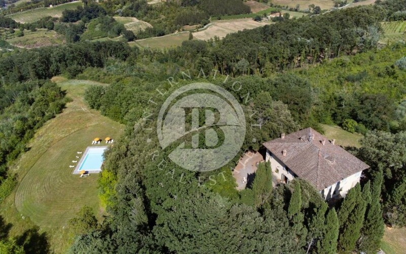 This splendid villa in a panoramic position is located in the heart of the Tuscan countryside just a few steps from the village of San Miniato. It is a magnificent result of an extensive renovation of the original medieval military fort dated 786 AD known as Castrum Moriori. San Miniato, a lovely typical Tuscan town, stands on a hill halfway between Pisa and Florence and was a very important economic and cultural center due to its position. Today this part of Italy produces numerous valuable materials and products such as leather, white truffle, wine and oil. Steeped in history, this centuries-old strategically positioned castle was once the victim of guerrilla warfare between the village of San Miniato and the city of Pisa during the 14th century. Later it was replaced by a large farm owned by the Grifoni family and then in 1751 it passed to the Pazzi family who transformed it into a farmhouse, evidence of which is still present today with the inscription of the family name in the stonework. In 2013 the castle was carefully restored and transformed into a wonderful characterful accommodation facility. In line with the rustic Tuscan style, each apartment in this property has been renovated with quality materials such as handmade terracotta tiles from Impruneta and skilfully restored 19th-century wood-beamed ceilings. The interior are composed as follows: the entrance from the garden leads onto a large hallway where the floor has been hand painted with the property's coat of arms. To the left one accesses the first apartment which consist of a living room and handcrafted kitchen in Carrara marble complete with a working fireplace. A corridor separates the living area from the sleeping area where there are two double bedroom and a bathroom with shower. Also on the ground floor is the second apartment with independent access and an exclusive courtyard. It consists of a large living room with a fireplace, a kitchen, three double bedrooms and three spacious bathrooms. Continuing on the first floor one finds the third apartment with a large living room also with a fireplace, a dining room with kitchen and two double bedrooms both with en-suite bathrooms. On this floor there is also the fourth apartment developed on two levels which is composed of a large dining room with kitchen and fireplace, a large bright living room, a bathroom and two double bedrooms each with a private bathroom. A stone staircase leads to the second attic floor where there is a large living space and two additional bathrooms. Returning to the ground floor, from a staircase one reaches the basement where there is a professional kitchen, a large hall with a sandblasted stone ceiling, three rooms with vaulted ceilings and a reception room with a minibar and direct access to the outside. These spaces were once the villa’s cellar but are now used to host conferences and ceremonies. To complete the property is a large parking area, a garden, 32 hectares of land with olive groves and woodland, a fantastic panoramic swimming pool overlooking the town, and a 600 sqm annex which is yet to be restored. Perched on a hill, the medieval village of San Miniato is immersed in the verdant Tuscan countryside and is still an important crossroad between the cities of Pisa and Florence. The town’s origin dates back to the Longobards who in 713 AD together with King Frederick II Of Swabia erected a church dedicated to the martyr Miniato. Still present nowadays is the Rocca di Federico II which dominates the highest point of the San Miniato hill and is the main element that distinguishes and identifies the borgo. From its peak one can enjoy a spectacular 360 degrees view and during sunny days the gaze reaches the sea. Napoleon also visited the village due to the local origins of the Buonaparte family and it was there that he received a certificate of nobility. San Miniato has numerous historical monuments all either renovated or reconstructed and which attest to its ancient roots. They include the Cathedral of Santa Maria Assunta. Throughout the year there are a number of celebrations and events such as the National White Truffle Market Exhibition of Colline Sanminiatesi, the theater festival and numerous musical performances. With its important tradition of leather production at Ponte a Egola, San Miniato is also famous for its white truffles, wine and oil.
