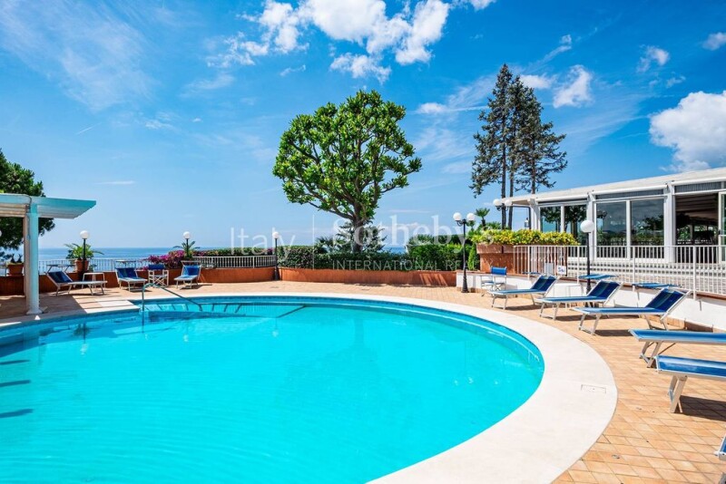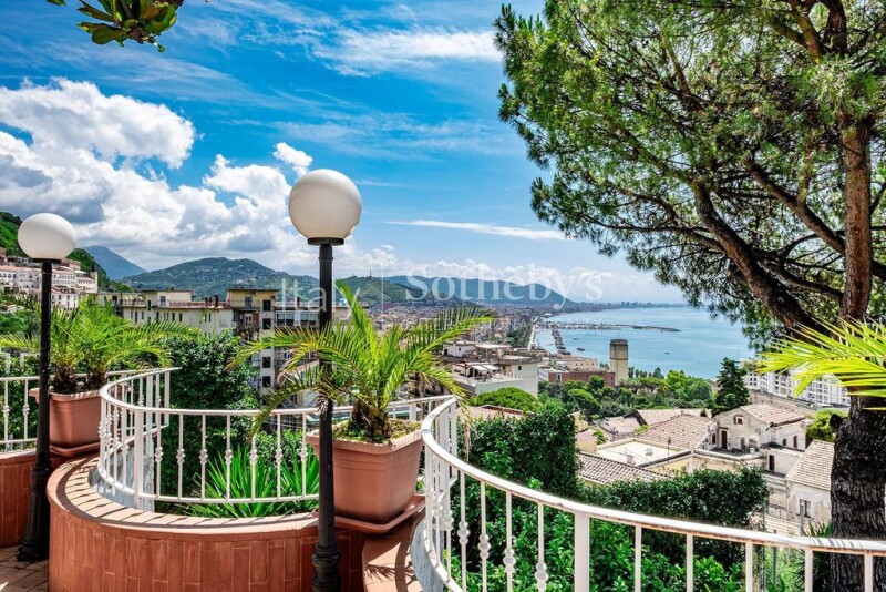 This charming property is located near Vietri sul Mare and close to Salerno. It is a spacious detached villa with three floors and stunning sea views. The villa is surrounded by 6000 square meters of gardens and terraces, providing a panoramic setting. The property features a beautiful swimming pool with a comfortable solarium, and it is furnished in the local style for a cozy atmosphere. The ground floor includes a bright and spacious living room, a large kitchen, and access to the gardens and pool. There is also a covered terrace that offers privacy and relax throughout the year. The upper floors, accessible by an internal elevator, house the bedrooms with en suite bathrooms. Each bedroom is bright and panoramic, with its own terrace overlooking the sea and gardens. The gardens and terraces of the property lead to a private pedestrian entrance that connects to the Salerno pedestrian area. The villa's layout is versatile, making it suitable for both residential and hospitality purposes. Additionally, there is a large car park on the premises that can accommodate multiple cars.