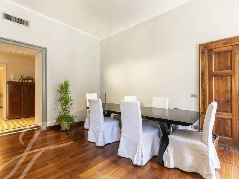 In a splendid period building of great historical value, equipped with concierge all day, prestigious apartment of great charm, approx. 230 sqm. with delightful small terrace on the same floor, composed of large entrance hall, triple living room with large dining room, kitchen with balcony, 3 double bedrooms and 3 bathrooms. Elegant and precious period finishes. High ceilings with stucco. Cellar. Motorbike place. Garage. Energy class G. Information in office.
