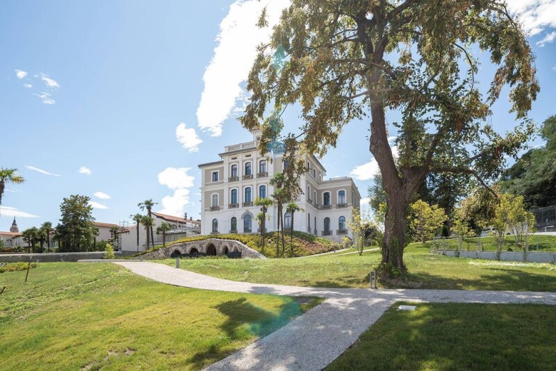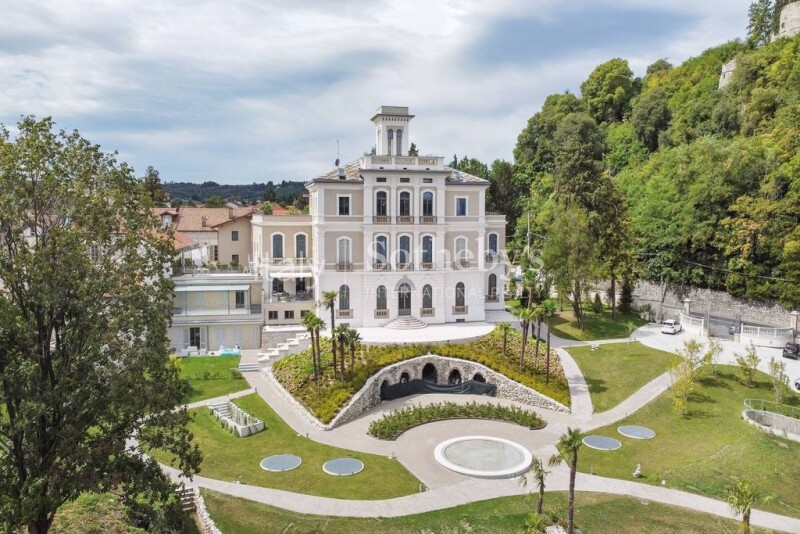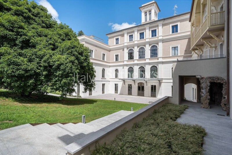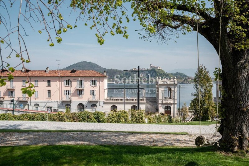 In the heart of Arona, inside the historic Villa Cantoni, a prestigious 19th-century residence designed by engineer Vittorio Cantoni, stands this luxurious apartment of over 150 m2. The architecture of the villa, characterized by a central avant-corps overlooking the lake and embellished by a turret, preserves its magnificence intact, with frescoes attributed to the Venetian painter Giacomo Casa, high ceilings and Art Nouveau details. The interiors of the apartment reflect this refinement, with fine finishes, original frescoes, parquet floors, masterfully crafted wooden window frames and top-level systems that guarantee maximum comfort, thanks to underfloor heating, air conditioning with air recirculation system and perfect soundproofing. The large living area opens onto a bright lounge with large windows overlooking the magnificent panorama of Lake Maggiore, the Angera Castle and the Rocca di Arona. The kitchen, designed to integrate harmoniously with the environment, lends itself to elegant and functional solutions. The sleeping area includes a charming mezzanine double bedroom with private bathroom, a second bedroom and two additional bathrooms. The property is completed by a double garage, a cellar, a private parking space and an enchanting garden, which offers an oasis of peace and beauty. A unique home, where the richness of history blends with luxury and modernity, in one of the most exclusive contexts of Arona.