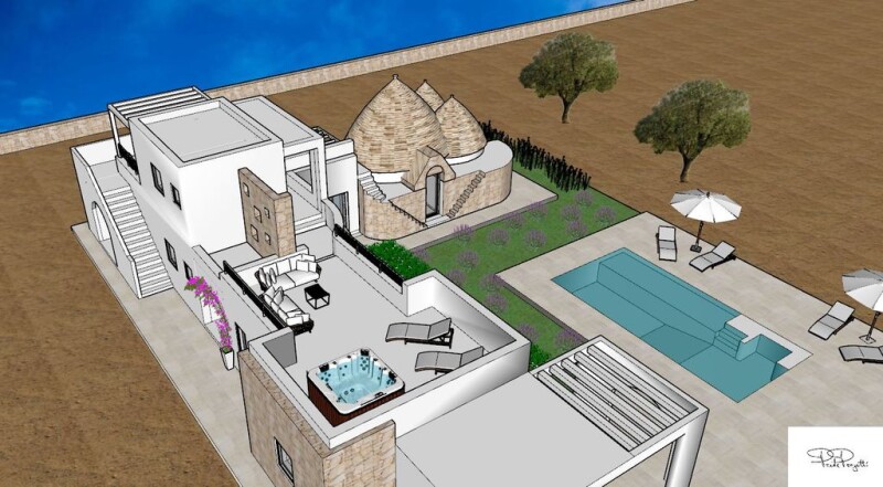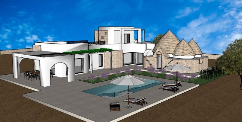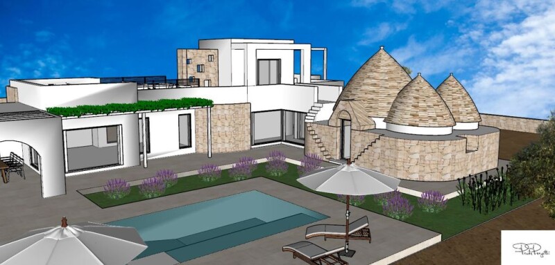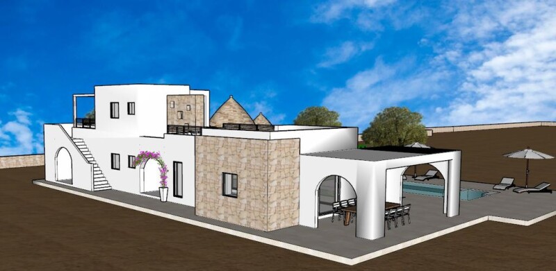 Salento Stone offers for sale a luxury villa, VILLA SALENTINA. Newly built villa on two levels for a total of 220 square meters of construction. The interiors respect the memory of the Apulian tradition with barrel vaults in exposed tuff, niches, arches. The floors in local stone although there is no lack of modern elements perfectly combined between past and present, ancient and modern. Large living room with conversation area near the fireplace that dominates the entire room, large open kitchen with service bathroom. The villa offers n. 5 bedrooms each with bathroom. The structure is completed with a large pergola and veranda. Salt water schimmer pool (40 square meters). Cistern. Artesian well with a depth of 200 meters. The property is completed with thermal cut aluminum fixtures. Heating and cooling system with air conditioning, alarm system, internet connection, fireplace, photovoltaic panels, video surveillance system. VILLA SALENTINA is built on a 12,000 sq. m. plot of land mainly olive groves with the possibility of expansion of 40 sq. m. A few km from the town center (3km), 10 km from Ostuni and 14 km from the Adriatic Coast easily reachable from the provincial road. Property under construction. Ask for information.