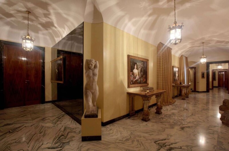 Important and elegant property of 1060 sqm located on the third floor of a 1935 building with 24-hour concierge service. Two lifts give access to the apartment: one reaches the two main entrances while the other gives direct access to the service area consisting of the kitchen, ironing room, laundry room and two bedrooms and bathroom for the staff. The property consists of two large noble halls with fireplace, breakfast room, dining room, a library, guest bathroom, a study, a winter garden with a bar area that connects to the kitchen and the second library as well as to the main living area. . The sleeping area consists of: the master bedroom with two walk-in closets, one for him with a small gym inside and one for her with large wardrobes, a bathroom with tub, shower, sauna, four double bedrooms served by two bathrooms, single room for guests with bathroom. The property is characterized by vaulted ceilings 3.7 meters high, the flooring largely in precious marble in the bathrooms, corridors, lounges and dining rooms, antique parquet floors embellish the sleeping area, a sophisticated alarm system is connected H24 to the private and public police and a video surveillance system monitors the entire building. The property includes a ground floor bedroom for the driver, eight balconies for a total of 50 square meters, two cellars and a double garage. (Code 7301).