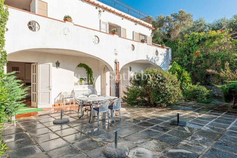 In the municipality of Anacapri, a short walk from the Fortini's walk, close to Mesola's sea descent, is located this beautiful villa with an attached park of about 3000 square meters. The villa, nestled in the olive trees in a silent position, enjoys two entrances, one pedestrian and a driveway; and is characterized by the presence of more than sixty plants of centuries-old olive trees, arranged on several panoramic terraces that enjoy an unparalleled sunset. The two-level main house consists of a living room, dining room, kitchen and four bedrooms with two bathrooms. There is also a depandance with an additional bedroom and a bathroom. A large wooden pool, a wonderful top solarium terrace and a wide car parking complete the property.
