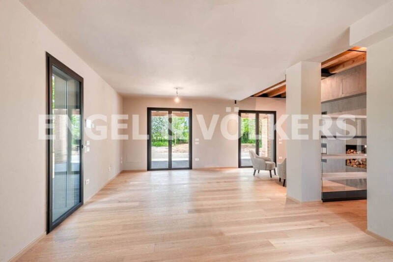 Surprising mansion in the Castel San Pietro Countryside, a shrine full of design, technology and care for the territory. Been recently constructed, the project respectfully used all the avant-garde methods to carry the assembly out, such as the technological running of the facilities, made possible thanks to the domotics and the energetic savings through the use of solar panels. Working with sensitivity and taste on the design and the spaces definition, through a constant connection to the countryside the property is nestled in. On top of that, the employed finishes were obtained partially from the same territory, a combination of the excellent Italian commodities; for instance, the parquet as well as the wall tiles. On the ground floor, the Villa welcomes its visitors with a corridor as an entrance leading to a wide saloon with a chimney, a kitchen and a dining area overlooking the portico, which oversees the green fields all around. Not to mention, a small restroom, a laundry room and a technical cabin for wires and electrical outlets on the same ground. Moving on, on the first floor, two large master rooms are located: the first one is provided with a private wardrobe and an en-suite bathroom, the second one with a private chimney, two large en-suite restrooms and a wide closet. If there’s a fascinating element in the house, let it be the light covering all the rooms inside, in perfect harmony with the nature on the outside. In fact, the property happens to be nestled in a 2000sqm garden, giving the chance to enhance the number with two or more hectares of the same farmland. Finally, the property gets to be enriched by another structure nearby, a dependence to be used as guest room, and one more edifice to be converted in a relax area. (These details and floor plans are purely indicative and do not constitute contractual elements.) Location Description The small town of Castel San Pietro Terme is located on the historical Via Emilia, 20km away east from the city of Bologna. A place watered by the Sillaro creek, which sees its origin here to flow on along the Pianura and mark the border in between Emilia and Romagna. Right at the bottom of the Appennino tosco-emiliano, the territory of Castel San Pietro is characterised by wood areas, badlands and valleys. Moreover, walking in the middle of the historic centre, showing Goth and roman remains, means to breathe Emilia in its most authentic flavour. Its walls and the defensive tower, two symbols of the town, embrace the streets, while Piazza XX Settembre shines through thanks to the yard sales taking place all over the year. An incredible assemble of countryside variety, wine culture and thermal spots. As a matter of facts, the high life quality of Castel San Pietro not only is it due to the presence of the famous Terme, but also to the presence of green areas where Nature gets to be the leading role.