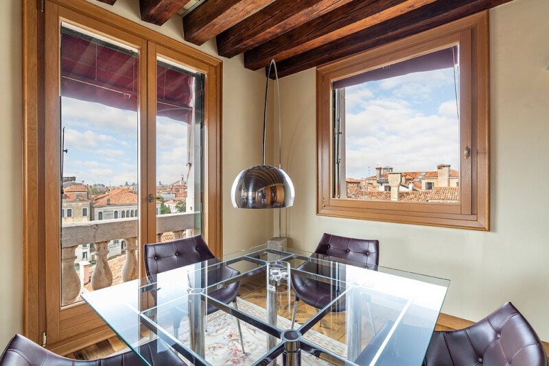This exquisite, sunny flat is located atop the iconic Palazzo Pisani and offers breathtaking views of the Grand Canal. Elegantly furnished with designer furniture and high-end finishes, the space exudes style and sophistication. The spacious living and dining area is complemented by concealed wooden cupboards (custom-made), while the elegant separate kitchenette is fully equipped with high-end Gaggenau appliances. The flat has a comfortable double bedroom, also with custom-made concealed wardrobes, and a modern bathroom entirely clad in travertine marble, complete with shower. Recently renovated, the property boasts independent air conditioning for year-round comfort. While the lift serves the building up to the fourth floor, two further flights of stairs lead to the sixth floor, where the flat is located. Located in the Sestiere San Marco, Palazzo Pisani is just a few steps away from Campo Santo Stefano, making it one of the most prestigious and lively areas of Venice. Price on demand.