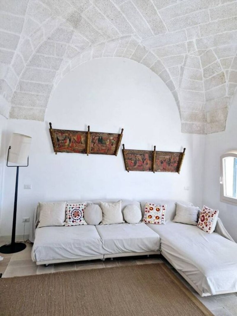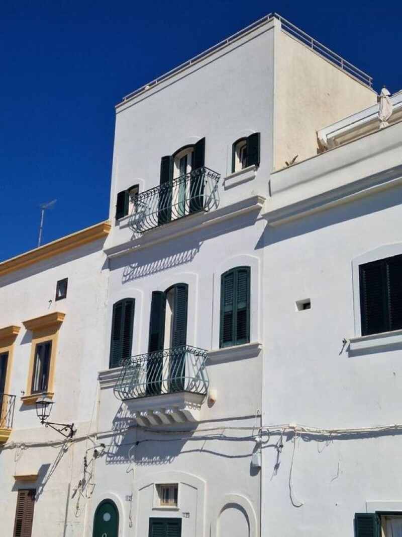 In the historic center of Gallipoli, Riviera Armando Diaz, an ancient house facing the sea is for sale, one of the tallest in the historic center. The solution, completely independent, is spread over two levels plus the terrace, reachable both via an internal staircase and with a private lift. The first floor is made up of two bedrooms and a bathroom, the second floor is made up of a living room, kitchen and bathroom, on the third floor there is a laundry room/kitchen and a furnished terrace. The house is sold furnished, is equipped with hot air cold air conditioners, water softener, sculptures in Lecce stone by a well-known local artist, floors in the bedrooms in wooden planks, stone in the other rooms. The view over the coast allows you to have a sea view from all rooms. From the terrace you can enjoy an exceptional panoramic view of the old city and the entire Gallipoli bay. For further information or to make an appointment call +393292173937 www.dimorasalentocharme.it--e1dab957ede9d22a05186609026a82ba!.
