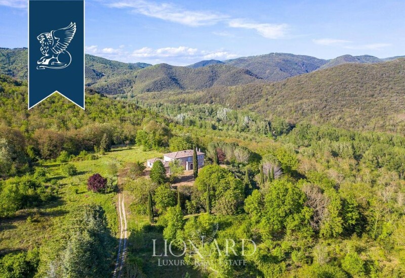 This charming villa for sale with breathtaking views of its entire surroundings is framed by Umbria's stunning hills. Thanks to its exclusive high position and uncontaminated context, this is the perfect place to appreciate the typical quietness of this area. Surrounded by 30 hectares of grounds, this property features some elegant white-gray stone cladding that is reminiscent of the old rustic-style farmhouses typically found in Umbria. A fairly recent renovation has affected the property's entire 500-sqm internal surface, offering great customization possibilities. Next to the big living room on the ground floor, the house features five comfortable bedrooms and five bathrooms, all of which offer splendid panoramic views of the hills. Its vast grounds have enough space to create an exclusive helipad. Perfect for those who dream of relaxing in a place of absolute peace, this prestigious home for sale among Orvieto's hills is a small natural oasis to rediscover the most authentic bond with a wonderful land. Ref: 6121.