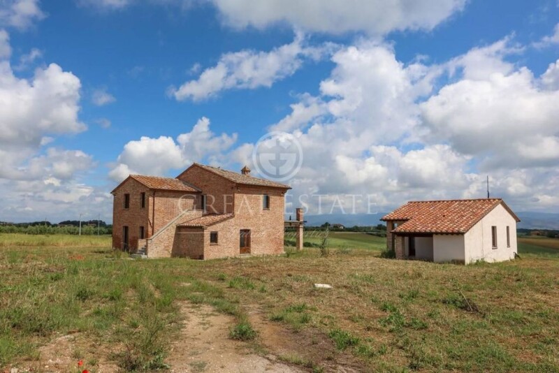 Podere Piccolo is the perfect combination of charm and typicality of a property that dates back to the mid-18th century, and the technology and comfort of a latest generation class A house. Located in a countryside area, easily accessible and with a wonderful view of the city of Cortona and Lake Trasimeno. An avenue of pines will lead you inside Podere Piccolo, with its manor house and outbuilding, surrounded by one hectare of land. The main farmhouse is on two levels for a total of 250 sqm. On the ground floor you will find a living room with a fireplace and large french doors that allow you to access the delightful porch, a kitchen, a study and a bathroom; on the first floor, connected by an internal staircase but also equipped with an entrance via an external staircase, you will find three bedrooms, two bathrooms and a magnificent panoramic terrace. The guest annex of 56 sqm, on one level, is made up of a living/dining area, a bedroom and a bathroom. The property is sold in its current state, i.e. a very advanced raw with all the systems already built, you will only have to complete the bathrooms with sanitary fixtures and coverings and choose the type of floor you like best. The land measures approximately 1 hectare with the possibility of purchasing an additional 5. It is also possible to build a 30 sqm outbuilding and a swimming pool. State of repair The exterior of the main farmhouse is the original one, in mid - 18th century brick. The wooden roof is thermally insulated and ventilated, the windows are in triple glazed PVC. The walls have a double wall with internal insulation. Underfloor heating/cooling. All powered by a heat pump connected to the photovoltaic and solar thermal system. Home automation video surveillance system. Arrangement for air conditioning and audio diffusion system. Energy class A. Utilities The property is supplied with electricity, municipal water connection and a well. Use and Potential Uses A perfect primary residence, equipped with every comfort and with high energy savings, or a beautiful second home with the possibility of building a swimming pool. Location Podere Piccolo is located in an area of the countryside that is not isolated and easy to access. The city of Cortona is 15 minutes by car, Lake Trasimeno and the village of Castiglione del Lago only 10 minutes. Land registry details The Great Estate group carries out a technical due diligence on each property acquired through the seller's technician, which allows us to know in detail the urban and cadastral status of the property. This due diligence may be requested by the client at the time of a real interest in the property. Ownership details and eventual contractual obligations This property is registered to an individual/s and the sale will be subject to registration tax according to current regulations (see private purchase costs).