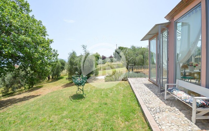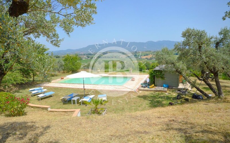 This splendid villa is located about 2-3 km from Narni, in a dominant position that offers breathtaking views. The property is surrounded by approximately 1 hectare of land with 120 olive trees and a swimming pool (10x4 meters) with a depth of 1.50 m. It is situated near the town of Narni, a charming Umbrian village rich in natural and historical beauty, famous for its magnificent historic center, the Mole di Narni (natural pools formed by the Nera River), the fascinating underground of Narni, and the Marmore Falls, located about 20 km away. Built in 2011, the villa features a modern style, is well maintained, and is surrounded by a beautiful veranda overlooking the valley, allowing you to enjoy the view even during winter months. The villa has a surface area of approximately 600 sqm, distributed over two floors, furnished in an antique style, and divided into a basement with an independent entrance and a ground floor. The ground floor includes an entrance hall, a guest bathroom, a kitchen, a spacious living room with a magnificent antique fireplace from the 1500s and exposed wooden beams on the ceiling, with access to the large veranda, a sitting room, two double bedrooms with en-suite bathrooms (one with a shower and the other with a bathtub), and a panoramic terrace. An internal staircase connects the ground floor to the basement, where you will find a wine cellar/laundry room, a technical room, a hobby room (which could be turned into a gym) with access to a portico/wine cellar, two double bedrooms with en-suite bathrooms with showers, a hallway, a room that can be used as storage or an office, an additional bathroom, and a kitchen. The villa is furnished with period furniture, offering a perfect blend of antique and modern styles. Most of the basement furniture is included in the price, while the remaining furniture can be subject to private negotiation, except for some personal belongings. All the rooms in the basement have independent access. Amenities: municipal water, methane gas heating, solar panels. Distances: excellent access, supermarket 2 km, Narni 2/3 km, Terni 10 km, Orte 10 km, Rome 100 km, Terme dei Papi 25 minutes.