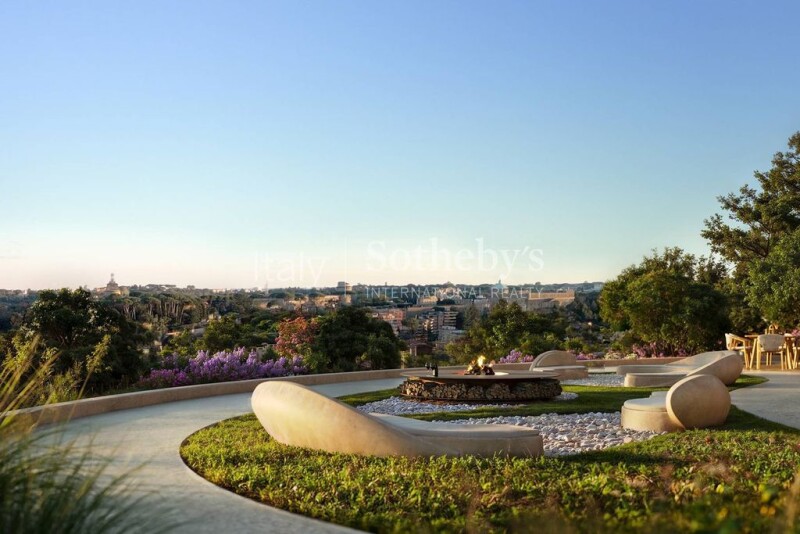 Terrazze Fedro, designed by the international firm MAD Architects in collaboration with Gruppo Sce Proget and Architect Stefano La Greca Bertacchi, redefines living in Rome. Surrounded by gardens, the complex offers spectacular views stretching from St. Peter's Dome to the Vittoriano. Its flowing lines and loggias create a unique and distinctive architectural character. The interiors of the 30 apartments are both elegant and innovative, with spacious terraces that overlook the surrounding landscape. In this stunning setting, we present a four-room apartment with a total commercial area of 115 sqm. The property spans 103 sqm on the first floor and features an entrance leading to a living room with an open kitchen, connected by full-height glass doors to a 40-sqm covered terrace, creating a seamless flow between indoor and outdoor spaces. The private area includes three bedrooms and two bathrooms. The two single bedrooms can be combined into a comfortable double room based on your needs. Each apartment is equipped with underfloor heating, air conditioning, home automation, and pre-wiring for security systems. The building offers premium amenities, including a relaxation area with views over Rome, an exclusive park, a fitness room, secure delivery storage, and concierge service. A cellar and garage are available for separate purchase. Estimated delivery: Q2 2026. Ref. B12.