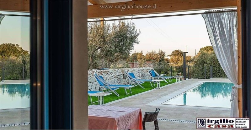 Immersed in the beauty of the countryside of Ceglie Messapica, Villa Trullo Blu is an extraordinary residence now for sale. This completely renovated villa, with a characteristic trullo, enjoys a privileged location and impeccable design, offering a true oasis of comfort and beauty. The Interiors: At the entrance of this villa, you will be welcomed by a large living room and an open plan kitchen. This space combines the cozy atmosphere with a modern design that blends perfectly with the rustic charm of the trullo. A modern heating system ensures maximum comfort in every season. The property boasts four spacious bedrooms, each with its own private bathroom, ensuring luxury and privacy. In addition, two of the bedrooms offer stunning views of the pool, creating a relaxing and romantic atmosphere. The Outsiders: Villa Trullo Blu is surrounded by a vast land of 16,000 square meters, which offers ample space for outdoor activities, gardens and olive groves. The heated pool of 10x4 meters is the perfect place to relax and cool off during the hot summer days. For an even more exclusive relaxing experience, the villa is equipped with a jacuzzi that can comfortably accommodate four people. The property has an artesian well, ensuring a constant supply of clean water. In addition, the use of solar panels for hot water reduces the environmental impact and ensures a sustainable supply of hot water. Security is a priority, and the villa is equipped with a camera system with video surveillance to ensure the tranquility of the residents. The renovated trullo offers an extra space with a Turkish bath, an additional bath and a double bedroom, adding a touch of authenticity and well-being to the property. Villa Trullo Blu is a unique opportunity to live in the heart of the countryside of Ceglie Messapica, surrounded by the beauty of nature, without sacrificing modern comforts and luxury. The combination of tradition and contemporary design makes this residence truly extraordinary.