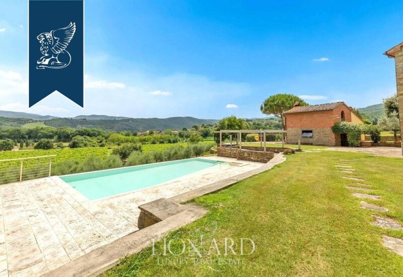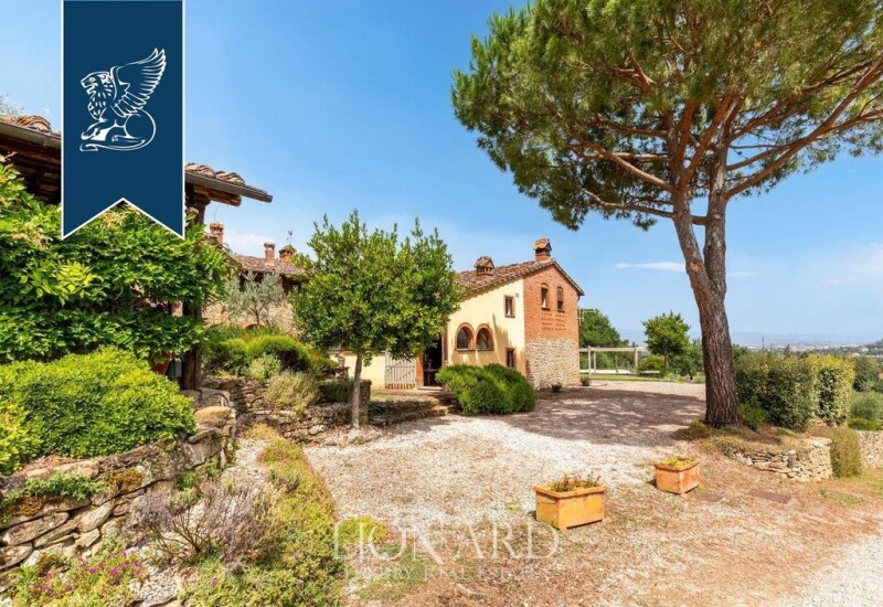 Set in the picturesque hills surrounding Arezzo, this 18th-century farmhouse blends historical charm with modern comforts. Recently renovated, the property maintains its rustic character with exposed beams and stone walls, while incorporating contemporary amenities. The estate comprises a main house and an annexe, totaling 694 sqm of living space, with optional extras like a sauna, fitness room, and a panoramic terrace. The exterior features a hectare of fenced land, including an olive grove, and an infinity pool with a sun terrace. The main house spans two levels. The ground floor includes a spacious eat-in kitchen with a wood-burning fireplace, a big dining room with another fireplace, a study area, and a bright glass veranda. The first floor offers three double bedrooms, each with a private bathroom. The master suite includes a Jacuzzi and a panoramic terrace. The annexe, also spread over two floors, provides additional living space with a kitchen, living room, and two more double bedrooms. The property's outdoor features include an infinity pool, an outdoor kitchen with a wood-burning oven, and a large garden with century-old olive trees. With its blend of luxury and traditional Tuscan beauty, this farmhouse is ideal for both personal use and boutique accommodation, offering a serene retreat close to Arezzo. Ref: 12992.
