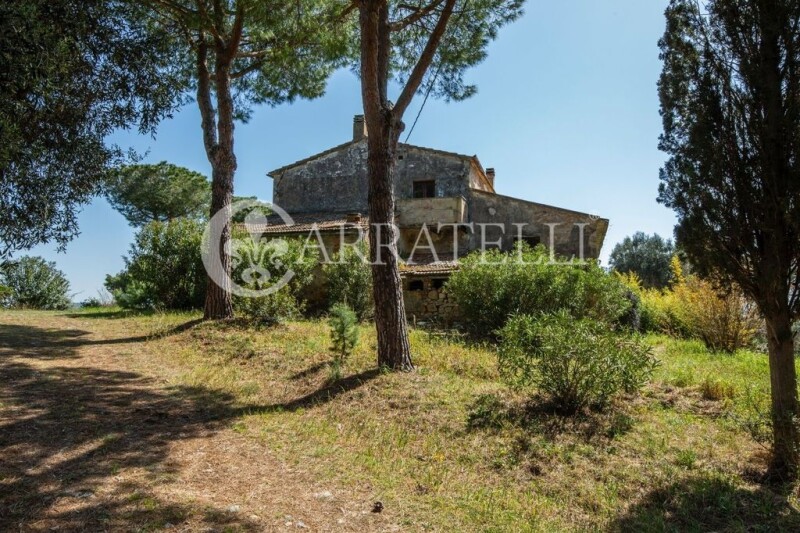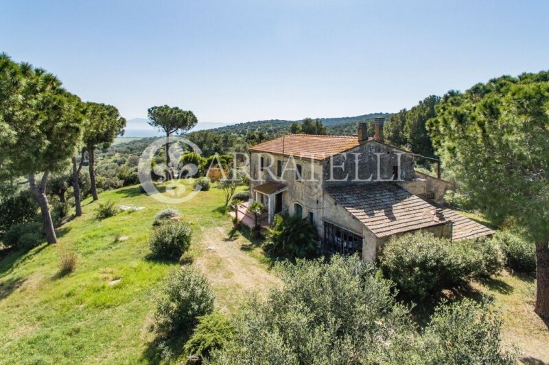 In the natural park of Uccellina, in Maremma, a few kilometers from Talamone, panoramic farmhouse to be restored of about 205 square meters on two levels. Within the private land of 13 hectares planted with olive trees the pigsty and the old barn are located a short distance from the main residence . Description Leaving the state road, one travels along a flat road immersed in a large green meadow, gradually ascending gently and arriving at the entrance gate of the property where one is greeted by a row of cypresses typical of the Tuscan Maremma. One has the feeling of being projected into a fairy-tale atmosphere where vegetation and scents are the protagonists and surround the farmhouse currently arranged on two levels. On the entrance floor we are greeted by two large rooms one used as a kitchenette and bedroom in addition to the bathroom, climbing a comfortable stone staircase, we reach the second floor characterized by the large kitchen with fireplace and balcony, the living room, and two bedrooms in addition to the bathroom serving the floor In the back of the house a large veranda was in the service of agriculture as storage and housing for animals . Three outbuildings detached from the house but located a short distance have a total area of about 145 square meters Outdoor space The land of 130000 square meters is slightly hilly but adjacent to the farmhouse is flat .Among centuries-old trees stand out the olive trees , you can count 780 plants , well maintained and producing the precious and renowned Tuscan oil . Part of the land is currently devoted to the vegetable garden easily manageable thanks to the presence of two wells within the estate . State and finishes The farmhouse is completely to be renovated, lends itself to marry multiple projects of internal subdivision, choice of materials and planting. Potential uses The property is potentially extraordinary as a seaside residence in total absence of noise and chaos, surrounded by greenery but also as two separate residential units with relaxation area, spa and dependance Location Talamone is a small town in Maremma, located south of the Uccellina Mountains. Characterized by an ancient fortress, this small medieval village overlooks the beautiful Argentario Gulf reflecting in the blue waters of the Tyrrhenian Sea. Like a pearl with ancient history today Talamone proudly maintains its appearance as a fortified fishing village. The small port is dominated by the great late 13th-century Aldobrandeschi fortress. The property set on the top of a gentle hill from which you can admire Monte Argentario, the bay of Talamone and the sea. The private land of 130000 square meters winds sinuously towards the valley giving absolute privacy and confidentiality to the property; the numerous olive trees and native plants embellish the natural scenery already made unique by the extraordinary location .