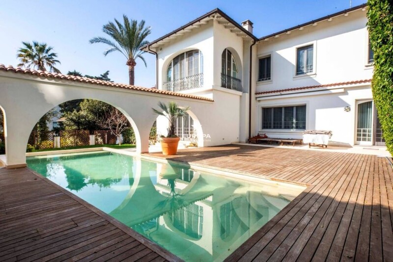 Immobiliare Europa offers for sale a very prestigious property in one of the most renowned streets of San Remo. We are located in the Foce area of Sanremo in a completely flat, reserved and quiet location, about 200 m from the sea and all services, as well as a beautiful park. The villa is in excellent condition, completely renovated. It is spread over three floors, with a total of 466 square meters, an outdoor garden of about 2,500 square meters, with swimming pool, parking spaces and a covered and equipped barbecue area. On the basement floor are technical rooms for the pool and heating, as well as cellars. On the ground floor, the entrance floor, we find the living area, very spacious and bright, divided into the different areas: we have a triple living room, divided into relaxation area, dining room, TV area; an American-style kitchen with central island and latest generation appliances, all furnished with a unique style and high quality materials, from the kitchen we have the dining area with a large table, from which we can access the porch, facing the pool. On the same floor we find a bathroom and two rooms. Through a comfortable internal wooden staircase we reach the second floor, consisting of 5 bedrooms, 4 bathrooms and a walk-in closet. The master bedroom, with walk-in closet and private bathroom, also has a living room area with some magnificent windows. This is a very rare and well-maintained property, equipped with every comfort, very spacious garden, perfect for enjoying life. For more info Tel. +39 0184525223 / cell. +39 348 3575453.