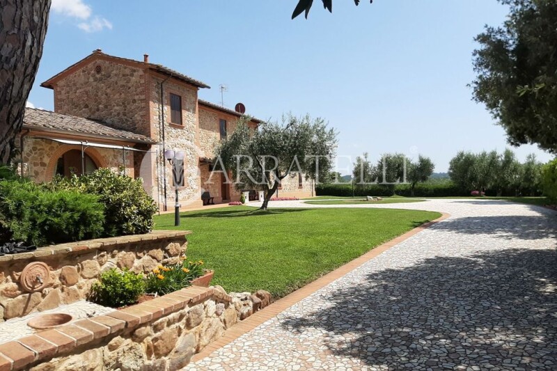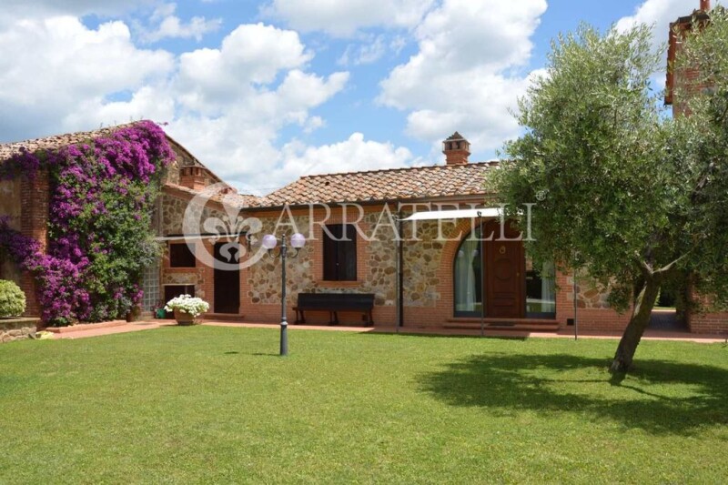 Stone farmhouse nestled in the beauty of Maremma A unique opportunity to experience the peace and elegance of the Tuscan countryside. Description This stone farmhouse, located near the charming village of Batignano, is a property of rare beauty. Completed in 2003, it covers an area of 350 square meters and offers large and well-distributed spaces. The property has five bedrooms, four bathrooms and a built-in kitchen featuring handcrafted details. The living areas are designed to ensure comfort and conviviality, blending tradition and functionality. Outdoor Spaces The farmhouse is surrounded by a private park with attention to the smallest details. An evocative mosaic path, made with fine marbles such as Rosso Verona, Bianco Carrara and Travertino, leads to the heart of the garden, where there is a round pool with water jet, decorated in blue glass mosaic. Satin lighting creates a magical atmosphere in the evening hours. Although there is no pool, there is the possibility of building one, adding further value to the property. Condition and finishes The property is in excellent condition, with top-notch finishes and attention to detail. Features include underfloor heating with a thermo-fireplace and gas boiler, a central vacuum system, an air conditioning system and an advanced irrigation system fed by an artesian well. The farmhouse is also equipped with an alarm system, an electric gate and rainwater recovery cisterns, combining elegance and functionality. Potential uses This property lends itself perfectly as a main residence for those seeking tranquility and comfort within walking distance of the city. It is also ideal as a vacation home, thanks to its proximity to the Maremma coast and its timeless charm, or as a valuable investment. Location The property is situated in a strategic location, a few minutes from Grosseto and near the village of Batignano. Surrounded by the beautiful Tuscan countryside, it enjoys ideal proximity to the sea and the natural wonders of the Maremma coast. This area is known for its history, breathtaking landscapes and easy access to major services. Batignano, with its authentic charm, offers a unique experience for those seeking a retreat immersed in Tuscan beauty and culture.