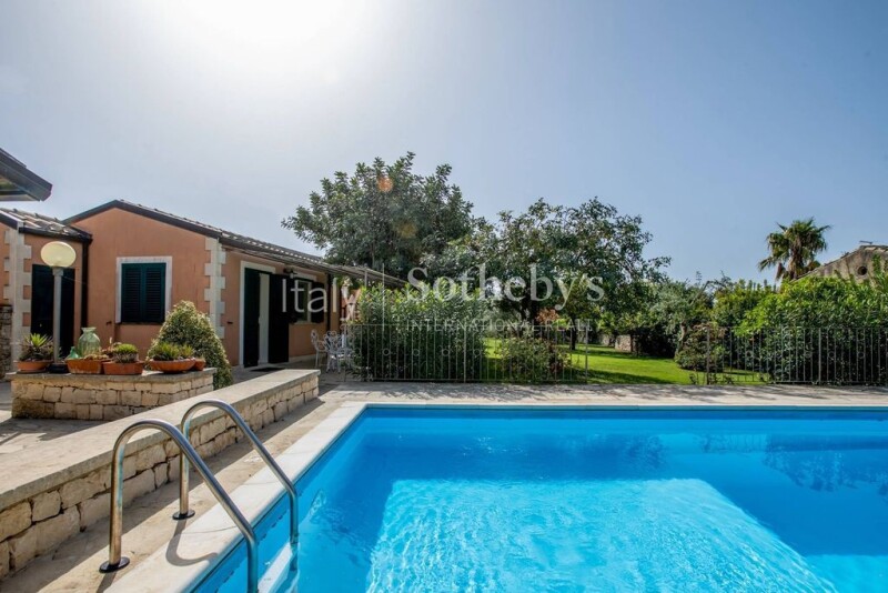 This villa with pool in Modica is located in a quiet and private location, surrounded by a large private garden and extensive surrounding land. The villa, built in 1990, is in excellent condition and enjoys stunning panoramic views of the Modican hills. The property is on two levels, for a total of about 300 square meters, which includes two large living areas, a kitchen, study with living room, five bedrooms, five bathrooms, all finely furnished and equipped with every comfort. The wood and aluminum fixtures and windows contribute to a cozy atmosphere; the property is equipped with an air-conditioning system, video surveillance and an alarm system that ensure maximum security. The partially furnished kitchen completes the property, with direct entrance to the outdoor spaces that, thanks to the large veranda, swimming pool and private garden, make it an ideal place to enjoy the outdoors. Independent heating is guaranteed thanks to the installation of photovoltaic panels, ensuring a reduced environmental impact and low running costs. Included in the sale is a newly built dépendance, with independent entrance from the main villa, a car garage and a storage room. This villa offers the perfect combination of tranquility and convenience; located just 10 minutes from the historic center of Modica, 20 minutes from the sea and about an hour from Catania airport, this property provides easy access to all the area's main attractions.