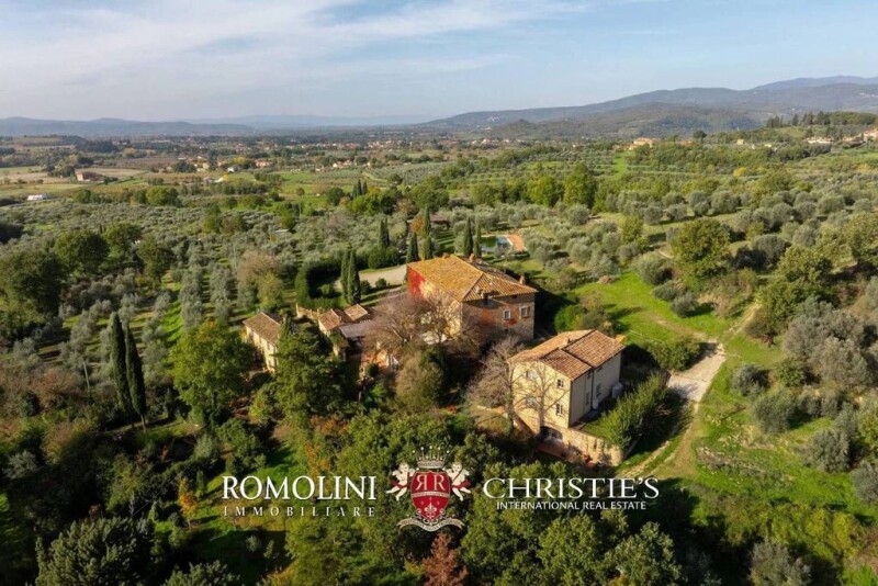 Located along the route of the Via Flaminia Minor which connected Arezzo and Bologna, rural hamlet with swimming pool for sale. The property was entirely renovated between 2003 and 2011 and now houses a total of 13 guest bedrooms (including four apartments) with a restaurant and breakfast room. The 5,200-sqm park surrounding the buildings ensures great tranquility and includes an 18 × 7.5 m swimming pool placed not far from the villa. The property is currently operating as a boutique hotel: the property is confirmed to be of an excellent standard, as evidenced by very positive reviews, and could be further improved with targeted investment and promotion on social media. Easily accessible from the municipal road system (only the last 200 m of the road is not paved but kept in excellent condition), the property has all the necessary services in the nearby village (900 m) and the historic center of Arezzo is about 10’ drive away. DESCRIPTION OF THE BUILDINGS, STATE AND FINISHES The villa (575 sqm – 6,187 sqft, 6 bedrooms and 7 bathrooms) is a large rustic building on three floors, currently used for guest accommodation. The structure is adorned on two sides with an American vine that lends color and warmth to the property in the various seasons. On the ground floor are the common areas of the villa, consisting of a large dining room, professional kitchen with bathroom for employees, breakfast room and service bathrooms for guests. The two upper floors are then home to four apartments: • Apt. A: living room with kitchenette, two bedrooms, storage room and bathroom; • Apt. B: living room with cooking corner, bedroom and bathroom; • Apt. C: living room with kitchenette, walk-in closet, two bedrooms and bathroom; • Apt. D: living room with cooking corner, bedroom and bathroom. Guesthouse A (40 sqm – 430 sqft, 1 bedroom and 1 bathroom) is a small building on one floor consisting of a living room with kitchenette, bedroom and bathroom. Guesthouse B (220 sqm – 2,367 sqft, 6 bedrooms and 6 bathrooms) is located east of the main villa and is a three-story building. On the basement level is a large garage, while on the two upper floors there are six bedrooms with en-suite bathrooms intended for guest accommodation. The property is completed by a small shed (25 sqm – 269 sqft) and the technical room for the swimming pool (10 sqm – 108 sqft). EXTERIOR The buildings are set within a park of 5,200 sqm (1.3 acres) dotted with tall trees and olive trees. A short distance from the villa is the 18 × 7.5 m swimming pool surrounded by a terracotta solarium. A convenient gravel apron at the end of the driveway allows several cars to park in a quiet and safe environment. CLOSEST CITIES AND TOWNS Closest services (900m; 2'), Arezzo (9km; 10'), Subbiano (10km; 10'), Anghiari (18km; 20'), Castiglion Fiorentino (26km; 35'), Cortona (37km; 45'), Montevarchi (44km; 40'), Siena (78km; 1h 10'), Florence (84km; 1h 15'), San Gimignano (126km; 1h 45') CLOSEST AIRPORTS Perugia San Francesco (92km; 1h 20'), Firenze A. Vespucci (101km; 1h 10'), Pisa G. Galilei (161km; 1h 50'), Bologna G. Marconi (182km; 2h), Roma Ciampino (238km; 2h 30'), Roma Fiumicino (252km; 2h 30').