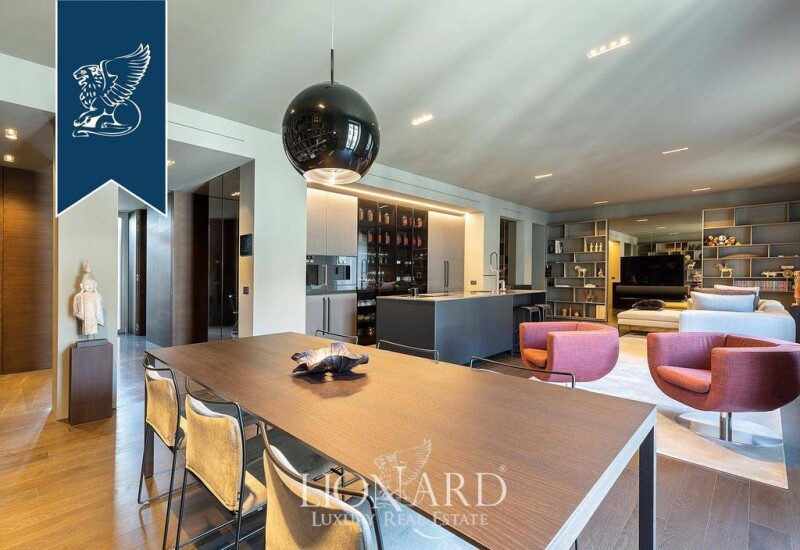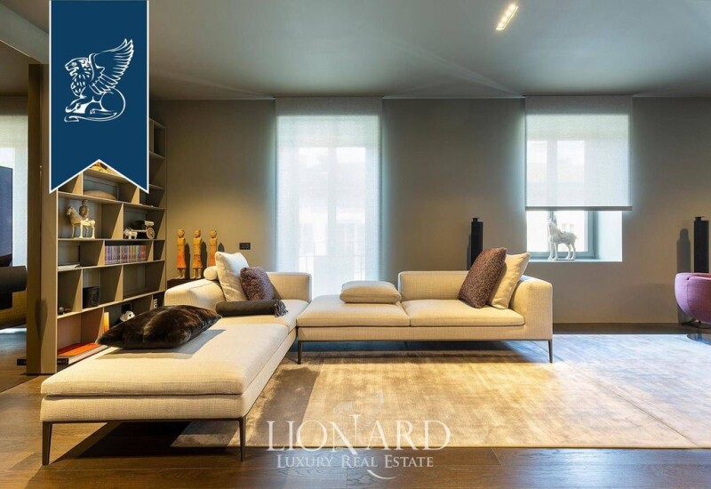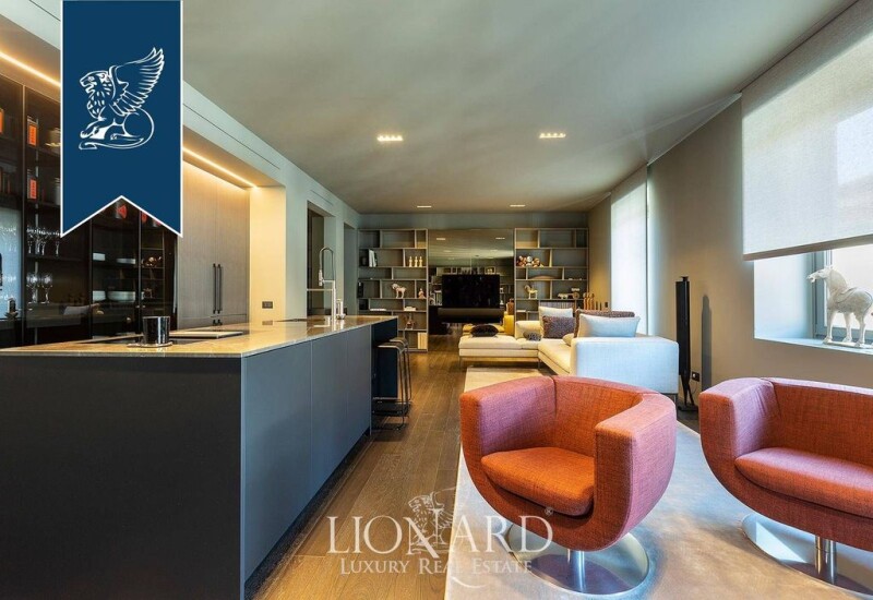 In one of the most luxurious areas of Milan there is this exclusive designer apartment for sale, located in the fashion district. This luxury property, an inimitable object with a unique and innovative design featuring home automation, is located on the fourth floor of an elegant building, equipped with a half-day concierge service and a convenient lift. The luxury property measures 135 square meters and is on one level; it is completed by four charming external balconies, that give it a further 5 square meters. It is home to a large living area, a large rectangular-shaped room that houses a splendid Boffi-designed kitchen in the middle, perfectly equipped with the latest generation appliances and with a comfortable central island. This is followed by the dining area and an elegant living room. From the living room, a door leads to a corridor, where we find a big Rimadesio walk-in closet, also bespoke, and a large bathroom with a window and two Boffi marble sinks and double shower. ; at the end of the corridor there is an inward facing bedroom, consisting of a double bed, two bedside tables and a dresser. The property includes two bedrooms one with a private bathroom with a marble shower and a wardrobe. Ref. 5783.