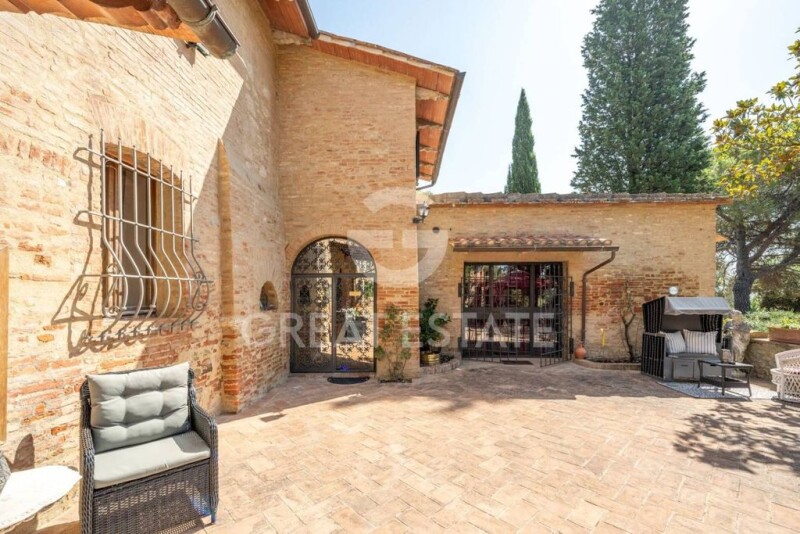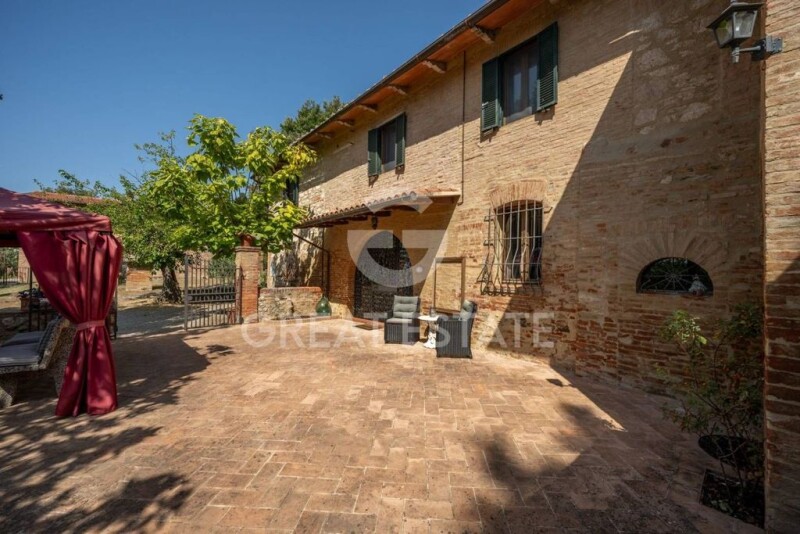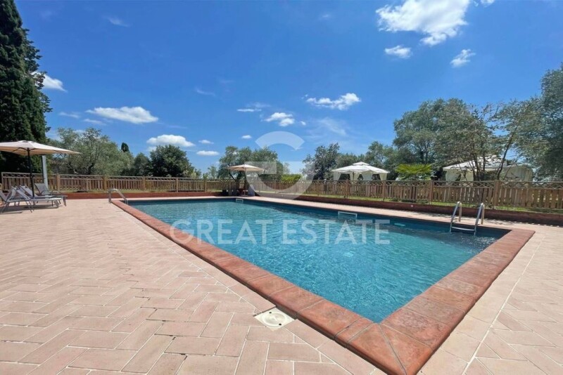 Exclusive renovated farmhouse of 370 sqm for sale with an annexe of 181 sqm and swimming pool in a private location a few steps from Siena, with a total of 9 bedrooms and 12 bathrooms. This exclusive property dating back to 1707, is located in a strategic position just a few kilometres from Siena, but in a reserved and quiet area. The farmhouse, which can be reached via a 500 m white road in excellent condition, is composed of two buildings. The main farmhouse is spread over two floors as follows. On the ground floor there is a large dining room, currently used as a breakfast area, with a closed veranda of about 45 sq m and two service bathrooms, one of which is dedicated to disabled people. There is also a large professional kitchen in Angelo Po steel, a technical room and a pantry with adjoining bathroom. Also on this floor, but in the left wing, there is a living room and two bedrooms with en-suite bathrooms. From the living room on the ground floor, internal stairs lead to the first floor of the property. Here, the sleeping area consists of five bedrooms, each with its own bathroom. The annexe, on the other hand, also on two floors, houses a storage area of about 94 square metres on the ground floor, while on the first floor there is an apartment of about 81 square metres with a kitchen and dining area, a large living room, 2 bedrooms and a bathroom. Outside, the property is surrounded by 1565 square metres of parkland and 2.2 hectares of land consisting mainly of 300-litre olive groves in production, holm oaks and fruit trees. The 6x12-metre swimming pool is fenced off and was renovated in 2022 and is surrounded by equipped gazebos where you can take a break from the sun or have dinner with your friends. State of repair The farmhouse was partially renovated in 2019. The furnishings are classic with refined details and the finishes are typical of Tuscan farmhouses with wooden beams and terracotta floors. Utilities The farmhouse has all the utilities. The water supply is guaranteed by the municipal aqueduct while heating is provided by methane gas boilers. There are inverter air conditioners and the property has an electric gate and surveillance cameras. Use and Potential Uses This property is perfect both as a first home for those who want to live a stone's throw from Siena but still enjoy the countryside, and as an accommodation facility. Location The property is located in the municipality of Asciano. The first town with all services is Castelnuovo Berardenga which can be reached in 10 minutes (6km), but Rapolano Terme is also a short distance away and takes about 15 minutes (13km). The location is very interesting because Siena is only 18 km away so you can get to the city in 20 minutes and to the International School in only 25 minutes by car. The nearest airports are Florence and Perugia, both about 1 hour and 10 minutes away. Land registry details The Great Estate group carries out a technical due diligence on each property acquired through the seller's technician, which allows us to know in detail the urban and cadastral status of the property. This due diligence may be requested by the client at the time of a real interest in the property.