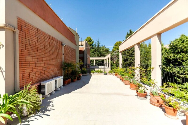 BARE OWNERSHIP - EUR - Viale dei Primati Sportivi, we offer for sale a PENTHOUSE with large TERRACES, located on the fifth floor of a curtain wall building with a lift. The property in excellent condition consists of a double entrance, lounge with adjoining dining area, four bedrooms, eat-in kitchen, and two bathrooms. The two large terraces enjoy a peaceful view of the greenery. A cellar completes the property, furthermore, belonging to the property, we find two condominium parking spaces. The single property on the floor has a quadruple and bright exposure. The double entrance offers the possibility of easily dividing the apartment into two independent housing units. The sale refers to the bare ownership (years 77 and 71).