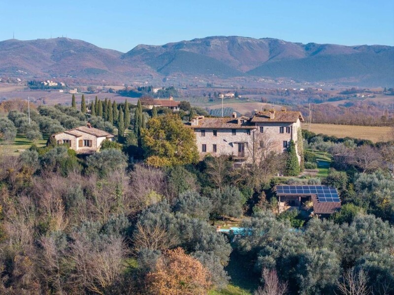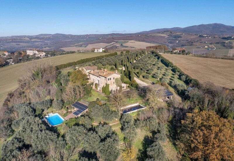 Enchanting property compendium with a breathtaking view of Todi, consisting of a charming farmhouse dating back to 1200, an independent guest house and a 1.6-hectare fenced plot of land, enriched by 200 centuries-old olive trees. This splendid corner of paradise represents the perfect synthesis of history, comfort and nature. The main farmhouse, reconsolidated in 2001, is on three levels and has been carefully maintained, preserving all the original elements, such as the wooden beams and terracotta tiles. On the ground floor, there is a cozy living area with two large living rooms, a central fireplace, a spacious kitchen and a service bathroom. On the first floor are two large bedrooms, each with en-suite bathroom, an elegant study, a living room and a panoramic terrace from which one can admire the surrounding landscape. The second floor houses two master bedrooms, both with walk-in closets and generously sized private bathrooms, offering exclusive comfort. Completing the property is a guest house built in 2006, offering a lounge with kitchen, two bedrooms and a bathroom, perfect for accommodating guests in total privacy. A covered garage with storage room, two cisterns for collecting rainwater and a 6x12-metre swimming pool (in need of equipment renewal) enrich this charming property. The location is ideal: immersed in the tranquillity of the umbrian hills, the property is only 2 km from the famous sanctuary of Collevalenza and 7 km from the historic centre of Todi. It is easily accessed via an asphalted communal road, while all the main services are only a 2-minute drive away. A unique opportunity to live in a corner of serenity, where the beauty of the umbrian countryside meets the historicity of an unrivalled farmhouse.