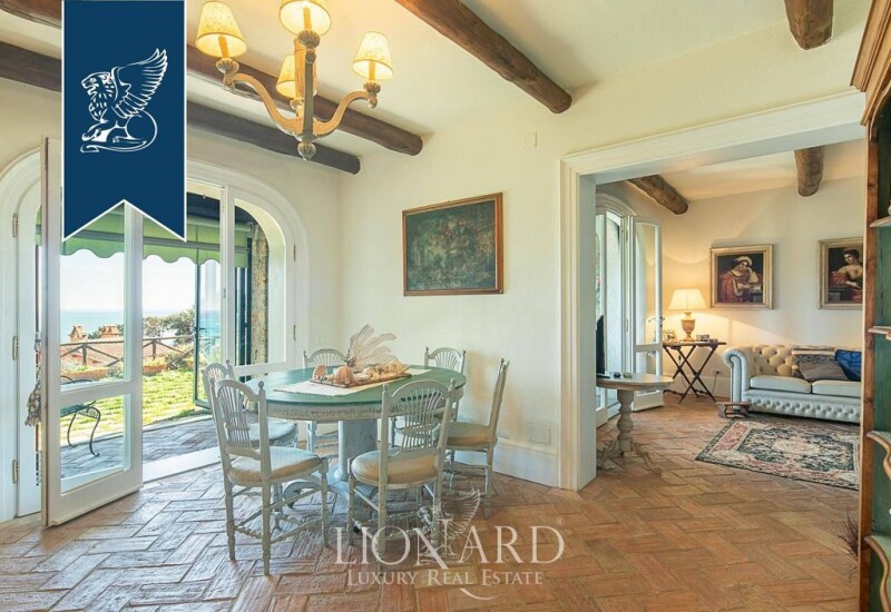 This stunning property for sale is in Monte Argentario, a Tuscan town that is famous for its rocky coasts dropping sheer down to a sea that is as blue as the sky. From the top of the cliff, this property offers a beautiful view of the sea, ideal for relaxing while admiring its infinite blue colour. This apartment benefits from a perfectly maintained 300-sqm private garden with a splendid swimming pool and direct access to the sea. Internally, it measures 220 sqm and has two floors; it offers a large and bright living room, a dining room, an equipped kitchen and a comfortable sleeping area with three bedrooms and three bathrooms. Its fine finishes, big windows and the classic style of a beach house are just some of the countless great features of this charming apartment. A convenient parking space completes this beautiful estate. Its exclusive location, direct access to the sea and wonderful view are peculiarities that make this property unique and an excellent estate both as a beach house and as a home for the whole year. Ref: 8410.