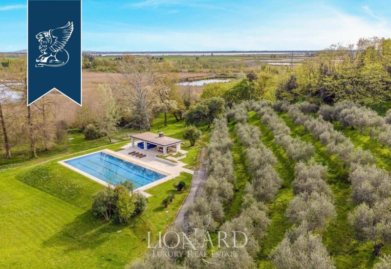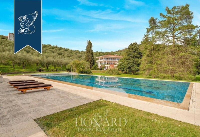 Nestled among the charming hills of Lucca, near Massarosa and the beaches of Versilia, this luxurious villa offers an oasis of tranquillity in the Tuscan countryside. With 1,100 sqm of interiors on three levels, the property spans 10 hectares and includes three separate structures. It features a wellness area, fitness area, swimming pool, and pond, combining elegance, comfort, and nature. Massarosa, a picturesque Tuscan town, is known for its beautiful landscapes and lakes, offering panoramic views and trails, and proximity to seaside towns like Viareggio and Forte dei Marmi. The property comprises eight bedrooms across a main villa and two annexes. The ground floor includes a bright living room, a study, a dining room, and a fully equipped kitchen, with big windows and garden views. The first floor houses five double en-suite bedrooms and a panoramic terrace. The basement features a large room with a fireplace, a cellar, a gym, and a wellness area with a sauna. Two outbuildings expand the living space. Outside, the villa is surrounded by 10 hectares of land, including a garden, woodland, and an olive grove with over 900 trees. The grounds feature a swimming pool, a relaxation area, an outdoor kitchen, and a small lake, offering unparalleled tranquillity and luxury. Ref: 12441.