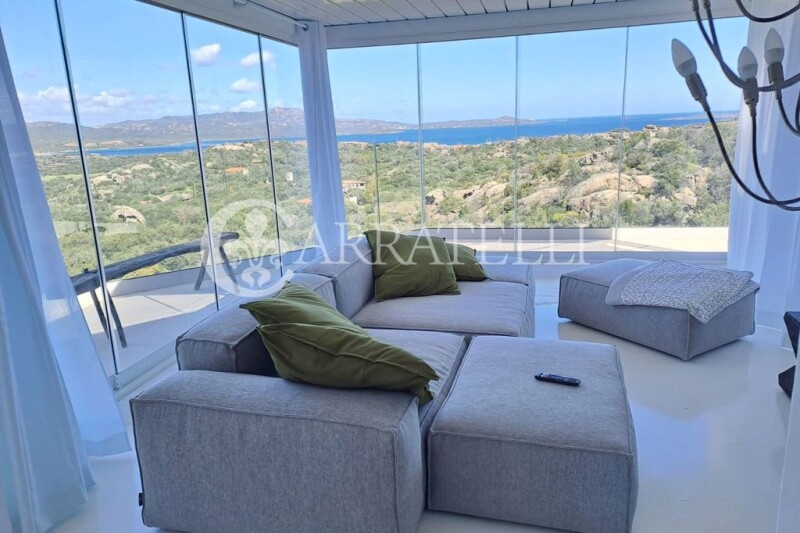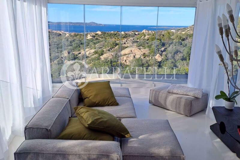 Charming modern cottage elegantly renovated and with a stunning view of the sea of Sardinia, surrounded by Mediterranean scrub and with private parking spaces. Description The cottage is located within a private complex of villas and surrounded by the typical Mediterranean vegetation, leaning on the granite rock, rises on three levels. On the highest level, which is accessed directly from the driveway, is the main apartment, an attic composed of entrance into the living room with kitchenette, the outer walls of this environment are glass windows that allow you to get lost with your gaze towards the sea, two double bedrooms and and two bathrooms complete this level. Going down one level we find a two-room apartment with living room with kitchenette, bedroom and bathroom, a large panoramic terrace in front of the apartment and open to the sea allows you to relax comfortably while admiring the view. On the lowest level, also above ground, at garden level, is a room with attached laundry. Outdoor Spaces The cottage has a private garden of about 350 square meters with typical Mediterranean scrub, and numerous rosemary and boxwood plants, set in the granite rocks that characterize the Sardinian landscape. Both the two-room apartment and the penthouse each have their own panoramic terrace. A highlight of this cottage is the rooftop solarium, which offers 360-degree views and allows it to be further equipped for even greater comfort. There is also a condominium pool to serve the guests of the complex. Condition and finishes Villino recently renovated in the soft colors of sand and white typical of a seaside home, combines a modern style and design. Potential uses The dream of many, the house that combines proximity to the sea and beautiful sea views, proximity to services, in the heart of the Emerald Coast. Location Sardinia nestled in the heart of the Mediterranean, with its sinuous and jagged coastline offers a unique landscape, rich in biodiversity.