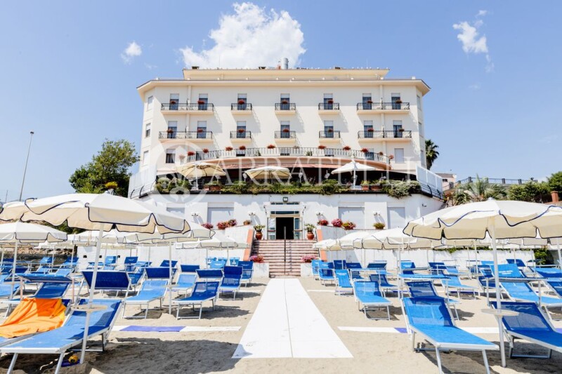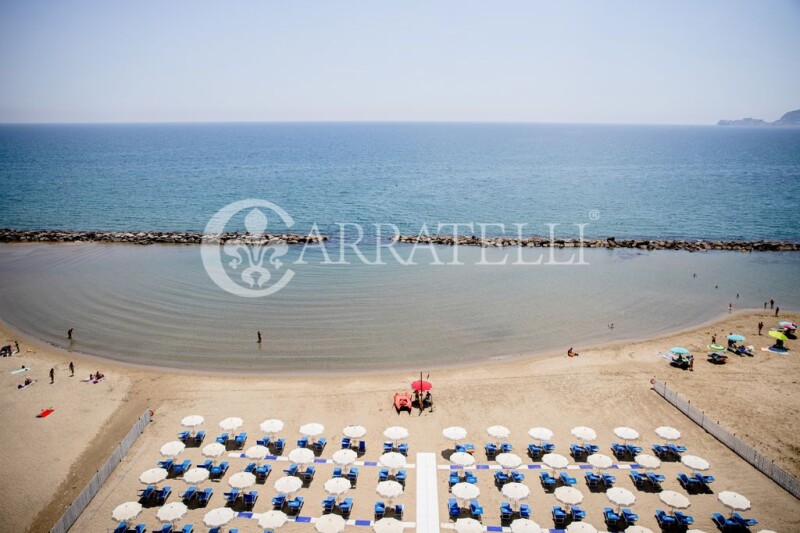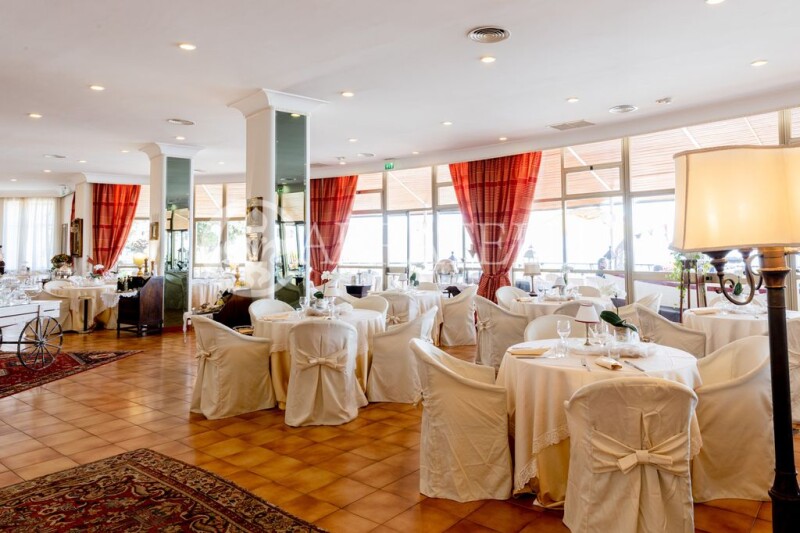 Elegant and renowned beachfront hotel with 54 rooms, restaurant, sea-view terrace plus private beach and tennis court for sale just 3 km from the center of Formia, a town in the province of Latina, in the center of the Gulf of Gaeta. Description The imposing hotel, with as much as 4391 square meters of total interior space, is located within a historic building built by Amedeo Bordiga. It has five levels, including a basement and four floors in height. All areas of the hotel are connected by both stairs and elevator and freight elevator. The basement is partially used as storage and warehouse and houses cold storage rooms, boiler rooms and drinking water tank rooms. In the other part is direct access to the beach by elevator and stairs, complete with changing rooms for customers and toilets. On the ground floor are the lobbies, lounges, offices, toilets, large dining room with sea view with terrace with canopy, a small private dining room with fireplace, kitchen and pastry rooms, dishwashing rooms, and finally the office and toilets for staff. The first, second and third floors house the sleeping areas housing the 51 bedrooms with en suite bathrooms, as well as linen storage rooms. On the fourth floor are three spacious rooms and a large conference meeting room with a terrace that runs all around and offers a breathtaking view of the Gulf of Gaeta. Outdoor spaces The hotel is accessed via a driveway that skirts the large private garden of about 700 square meters embellished with tall trees, the tennis court and direct access to the private beach. The property has 785 sqm of terraces that allow for breathtaking views of the sea in front. Condition and finishes The 3-star hotel is in good condition with the business fully up and running. It needs some renovation and modernization work to make it a 5-star luxury resort. Potential uses This is an excellent investment opportunity to increase the business already excellently established by the owner family. Location Formia is very important from a strategic point of view, not by chance it was chosen by the Romans as a point of passage for the Via Appia. The property is just 3 km from the town center where all the main services are located, about 20' from Gaeta and 30' from Sperlonga, Italy's most beautiful village. Naples and Rome, with their respective airports, are an hour and a half and two hours' drive away, respectively.Of particular importance is the port of Formia, a short distance away, from which regular ferries depart for the islands of Ponza and Ventotene.