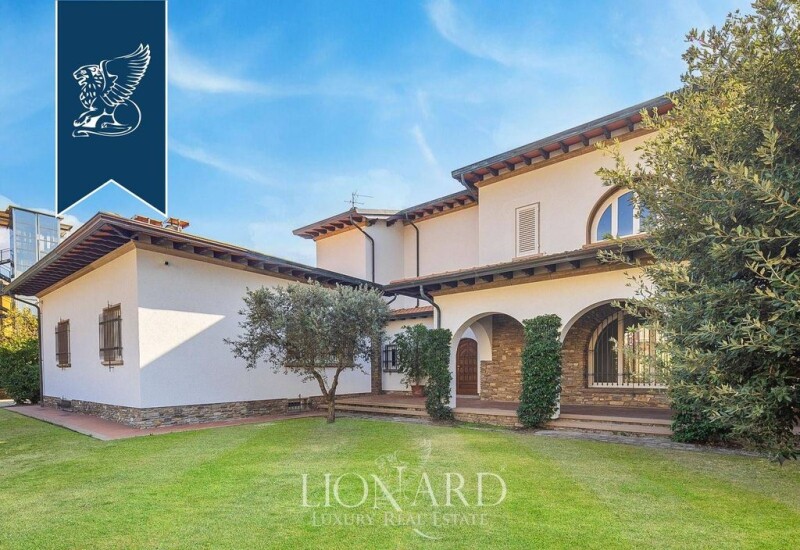 Elegant villa for sale in the heart of Tuscany, in Montecatini Terme, protected by a well -kept garden of 3000 square meters with olive trees, maritime pines and flowery bougainville. Finely renovated and treated in every detail, also from an energy point of view, this residence is divided into 3 levels, for a total of 900 square meters, and is divided into two apartments plus a service two -room apartment with independent access. The ground floor is accessed through a large porticoed patio, which anticipates the entrance of the residence with fascinating white arches that frame the property. The second basement apartment has the entire open front thanks to the landed land towards entry on the underlying Viale. The villa has an important entrance for each apartment, as well as one on the sleeping area and one on the kitchen. The living area has a large lounge, kitchen, pantry, lounge area and relaxation area, while the 4 bedroom sleeping area with en suite bathroom. This level is enriched by a large internal patio of 64 square meters, with the possibility of closing with bioclimatic pergola. On the first floor, accessible via a splendid wooden staircase, there are a large bedroom with a private bathroom and a study room. The basement is divided into an independent apartment, communicating with the main residence through an internal staircase. This level offers a large lounge with fireplace, kitchen, pantry, a second large living room with possible use of cinema room or music room and 2 bedrooms with en suite bathroom. A large garage completes the property. Ref. 11354.