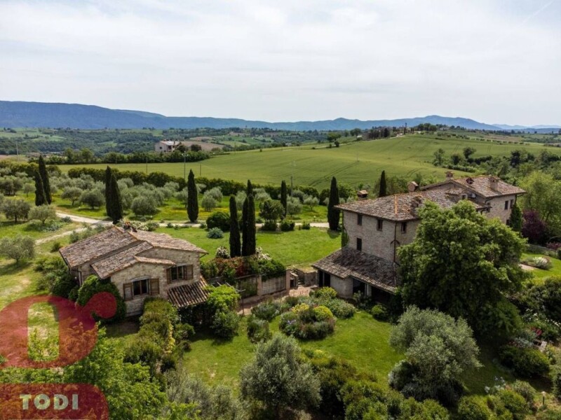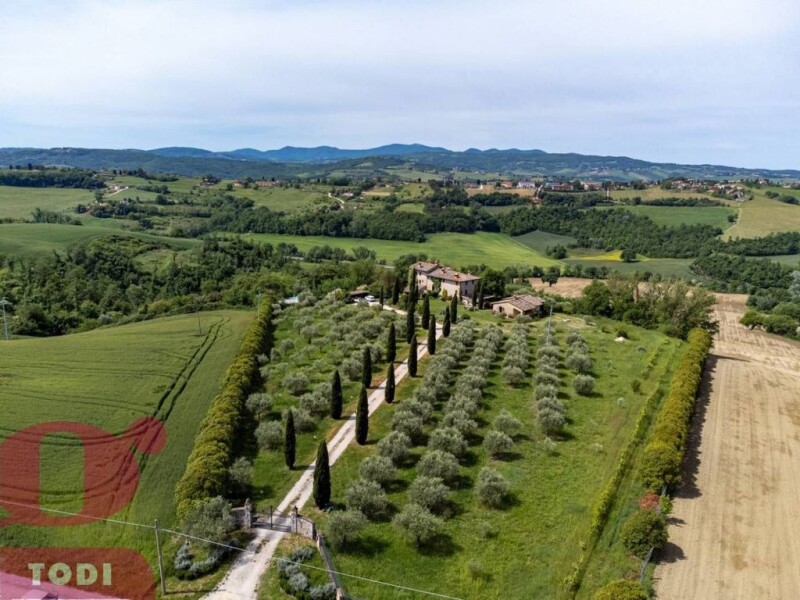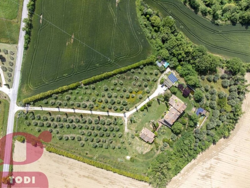 The main structure, developed on 3 levels for a total of 490 square metres, was renovated in 2000, enhancing all the characteristic elements: the original terracotta floors, the stone, the vaulted ceilings and those with beams and terracotta tiles. On the ground floor: there is a large entrance hall with a fireplace, a bright living room, a dining room, a bathroom with window, a hallway, the kitchen with a wood-burning oven, a pantry, a storeroom and an outside porch. On the first floor you find a large living room with fireplace, 2 large bedrooms, 2 windowed bathrooms with shower, 2 hallways, a study, a storeroom and 2 balconies, one of which allows direct access to the floor via an external staircase. On the second floor: there are the 2 bright master bedrooms with splendid views of the surrounding hills, one with a fireplace and one with a walk-in wardrobe, two bathrooms and a large cloakroom. The independent GUESTHOUSE, built in 2006, is on two levels and the same characteristic elements were used for its construction: terracotta floors, beams and terracotta tiles. On the first floor is the living area for a total of 78 sqmwith living room-kitchen with fireplace and custom-made kitchen, a hallway, two double bedrooms, a bathroom with tub and the porch. On the ground floor there is a large GARAGE, a hallway, a laundry room, a toilet and a storeroom, totalling 86 square metres. The park of 1.8 hectares, completely fenced in, is adorned with a splendid tree-lined avenue and an olive grove with 200 trees. The property is completed by a 6x12 swimming pool, with annexed pergolas with barbecue area and technical rooms, pergolas used for parking cars, a farm shed, a 15kw photovoltaic system, a well and a rainwater recovery tank.
