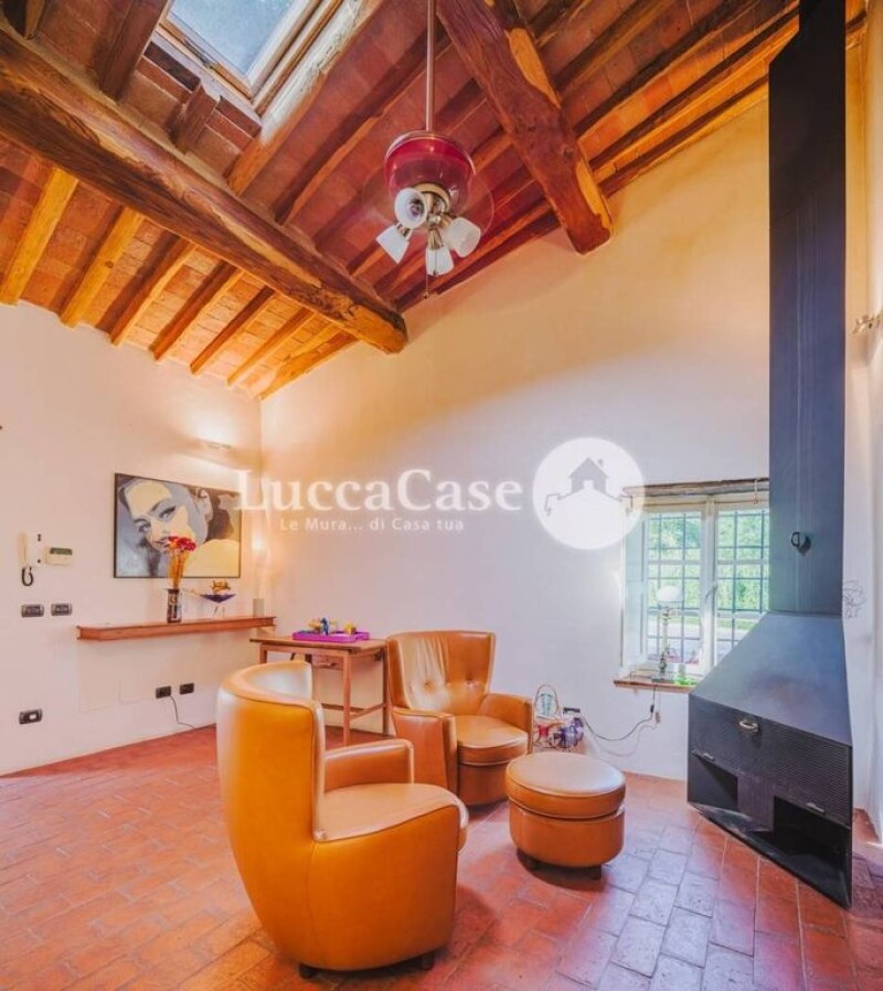 E116Z - Chapel (Lucca) Villas for sale Farmhouse, 11 rooms - 316 sqm - with independent entrance, 4 bedrooms and 3 bathrooms House, 4 rooms - 118 sqm - with independent entrance, 2 bedrooms and 2 bathrooms Along the road that leads from Lucca to Camaiore and its beach, at a winding curve and just over 6 km far from Lucca walls, there is a property composed by 2 houses where each dwelling is equipped with the most modern conforts. First House A beautiful white farmhouse of last century used as a bakery and even as a famous club of Lucchesia area since '90s. The farmhouse has an area of more than 300 square meters and has been completely renovated in 2004 following a recovery project by the owners who trusted to their heart told them. Two main entrances to the house once you climb the stairs and arrived at a large porch where there is an wood-burning oven of the old bakery that prepared and baked bread for the local people. A door leads us to the interior that overlooks a large hallway, hosting a modern wood fireplace and two armchairs, an open-space with a large kitchen diner, the ceramic background runs over the work surface to protect the wall from splashes and making the whole more lively and smoother. The other entrance leads us into a large living room with fireplace. The terracotta floor and beams and tricks characterize these rooms. Also on this floor there is a sleeping area with 3 bedrooms with parquet on the floor, a bathroom of warm colors, with window and shower. Climbing the stairs you reach another floor where the hallway leads us to a bedroom with parquet on the floor and a truss that accentuates the feeling of a safe roof, there are a windowed bathroom - where the blue color of the sky prevails - with bathtub and thermo-decor system and a useful storage attic. On the ground floor - at garden level - we have a heated basement heated by a stove, a study room, a large room with wood fireplace, two connecting rooms, one with exit to the garden and a laundry area with patchwork floor - the old floor of the club. There are also a bathroom with shower and cellar rooms. Second House In the same property there is another house of a little bit less than 120 sqm. The entrance leads us to a kitchen diner and to a large sitting room of which two walls are in glass overlooking the garden and giving an extreme brightness, present on the same floor a bathroom with shower. Going up the stairs we have two large bedrooms connected and a large windowed bathroom with shower. All the flooring is in false parquet even in the bathrooms and the exposed beams, with their veins, and the tricks decorate the ceiling of the first floor giving warmth and hospitality. Everything is surrounded by 4.100 sqm of garden where it’s possible to build a swimming pool. Energy Class “G”.