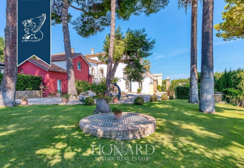 A romantic and elegant villa, an old mansion of the 19th century, located in the Pescara area on the Adriatic coast, is sold. This majestic mansion with an area of 1840 square meters includes the main villa, an old patrol tower, outbuildings and a spacious hall-Varanda, ideal for holding events and techniques. The villa is surrounded by gardens with an area of 7900 square meters. This villa was carefully restored in the 1990s and declared a historical and cultural object. It is one of the oldest and most prestigious villas for events in the Peskara area. Villa, initially a farmer house of the late 19th century, is furnished with original old furniture and decorated with crystal chandeliers, painted frescoes of arches and brick ceilings. It has 7 elegantly furnished bedrooms with beautiful sea views and surrounding hills. On the villa, you will find a picturesque park with palm trees and centuries-old pines, as well as a guard tower, extensions and a spacious Veranda Hall, ideal for events. The villa also has a large parking lot with many parking spaces. Ref: 10946.